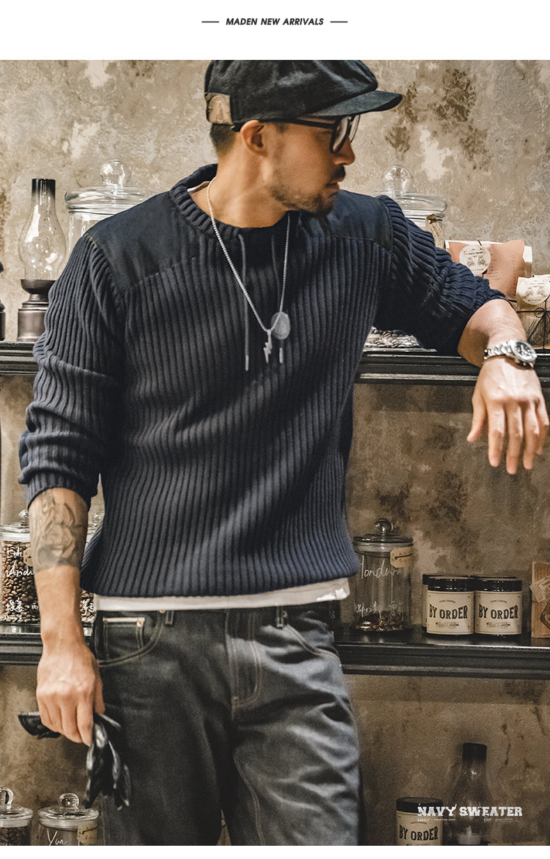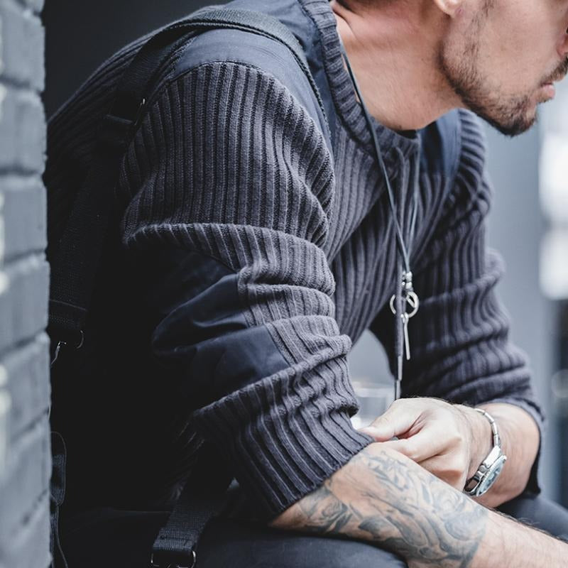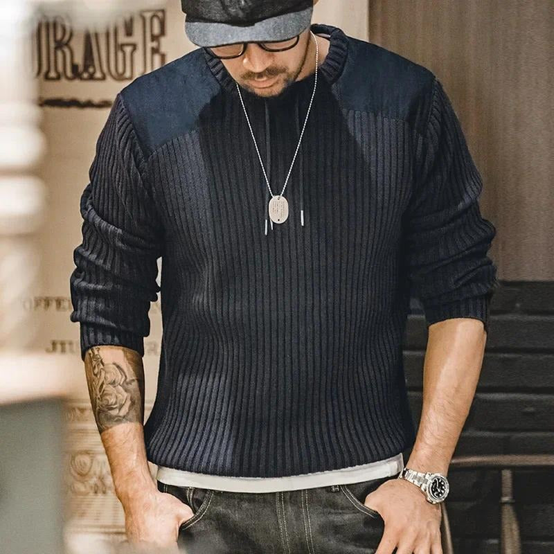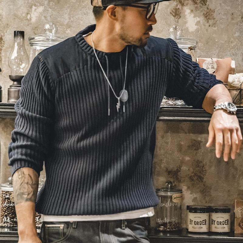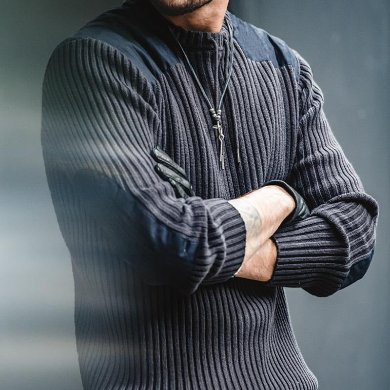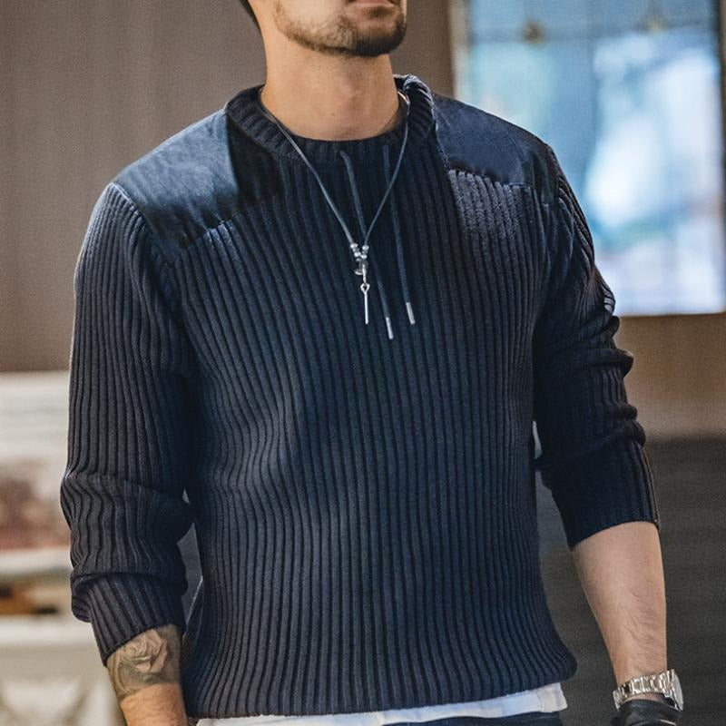 Men’s Patckwork Vertical Stripe Sweater