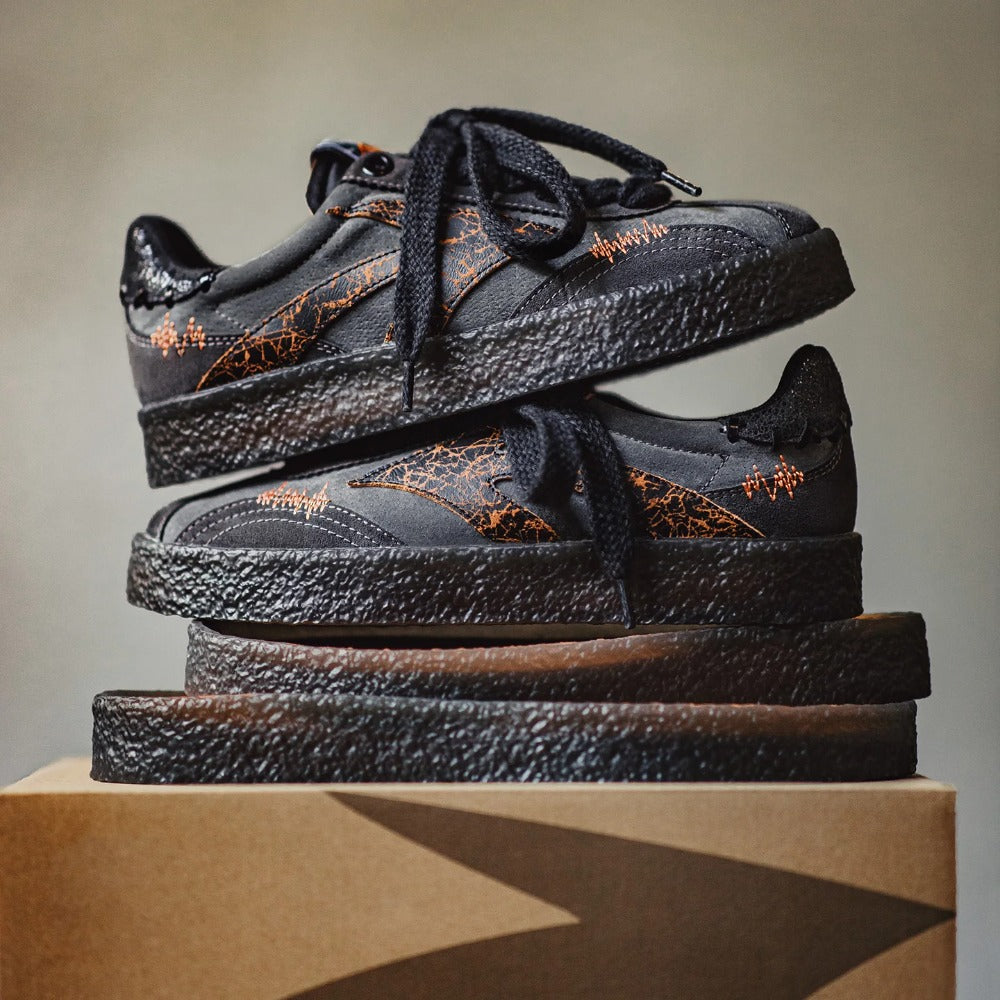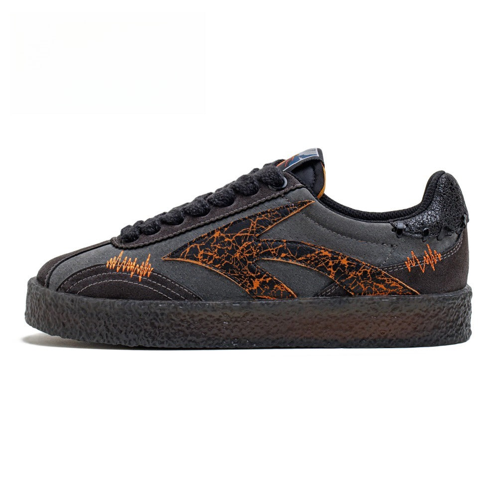 Men's Chunky Skate Shoes Black Low Top Sneakers with Cracked Print Platform Lace-Up Shoes for Street Autumn and Winter