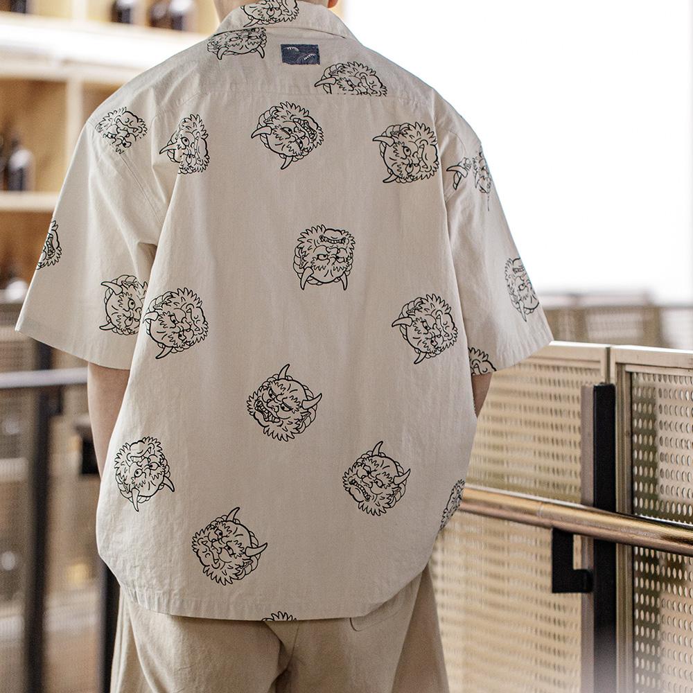 Men's Retro Linen Shirts Printed 100% Cotton Loose Short Sleeve Shirts Summer Menswear