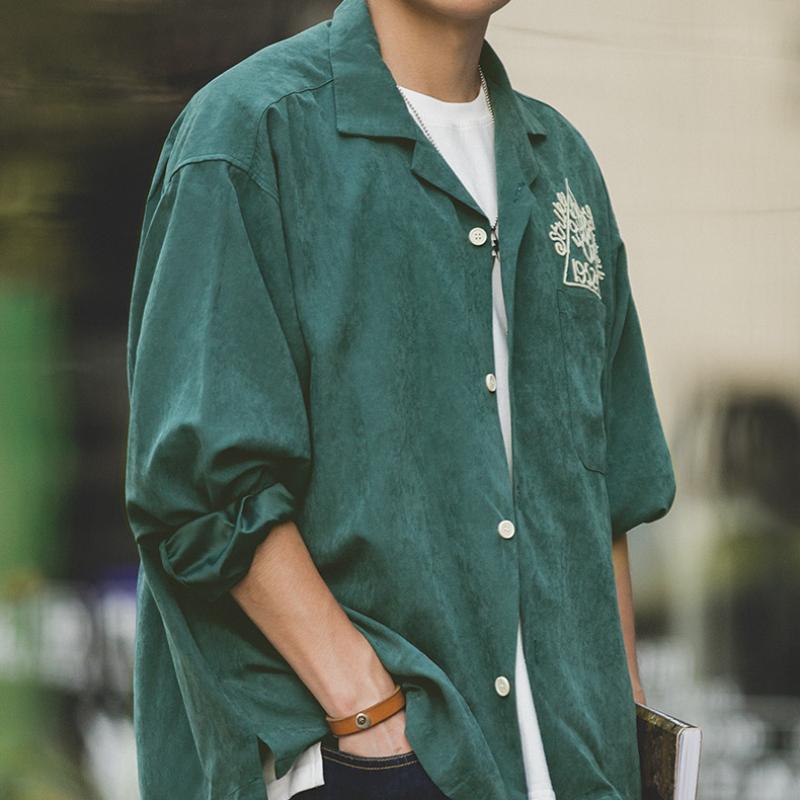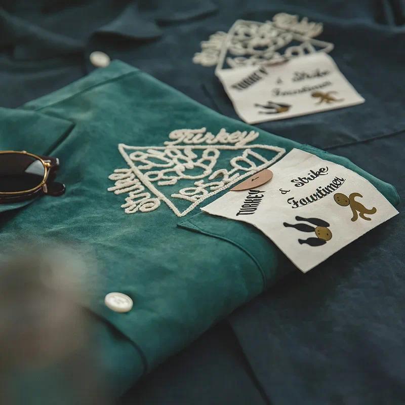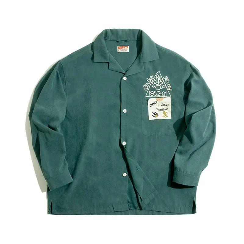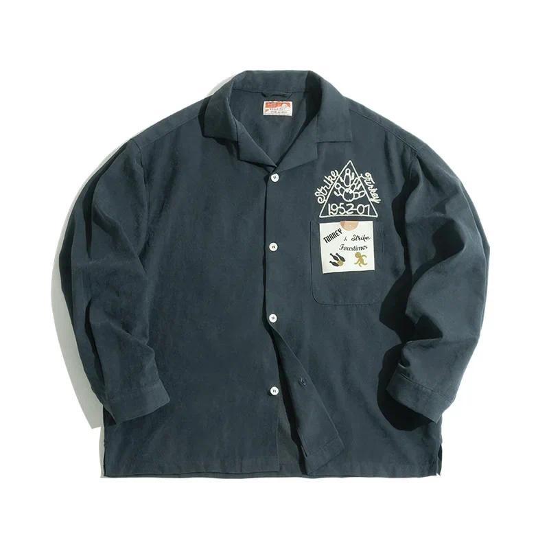 Menswear Embroidery Shirts For Men Streetwear Retro Bowling Logo Casual Coat Shirt Solid Soft Breasted Cloth