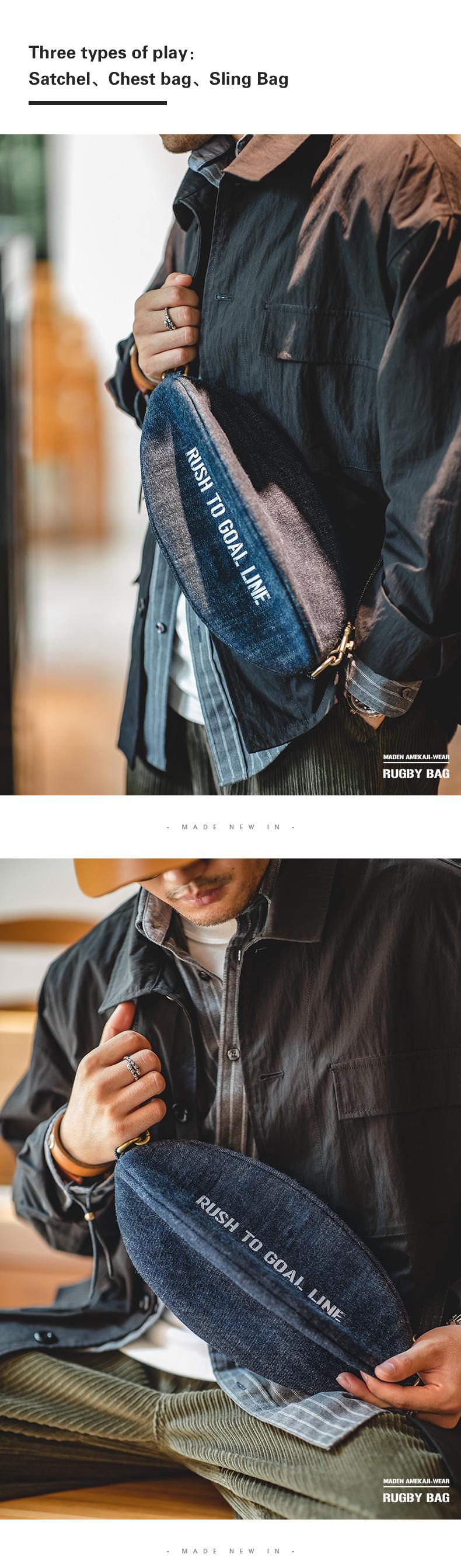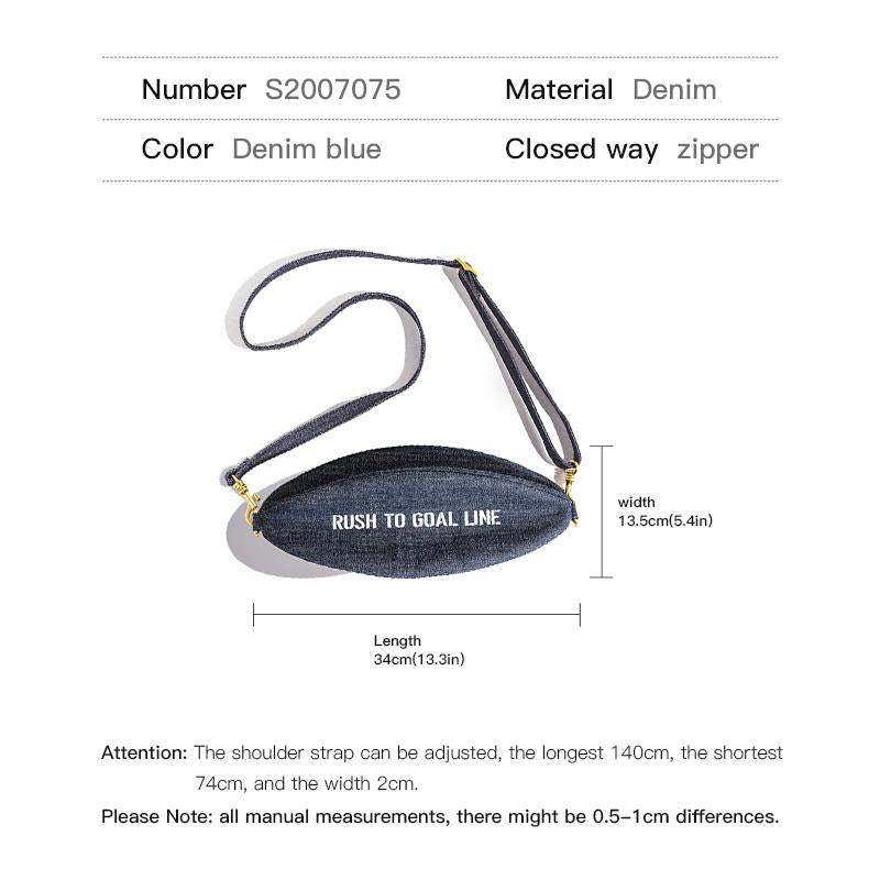 Retro Denim Shoulder Bag Unisex Letter Rugby Sling Bags Large Capacity Designer Handbags Female Crossbody Accessories