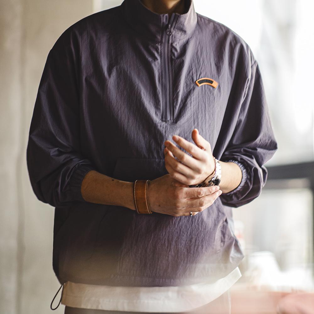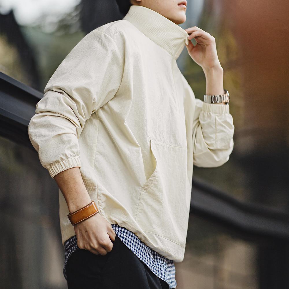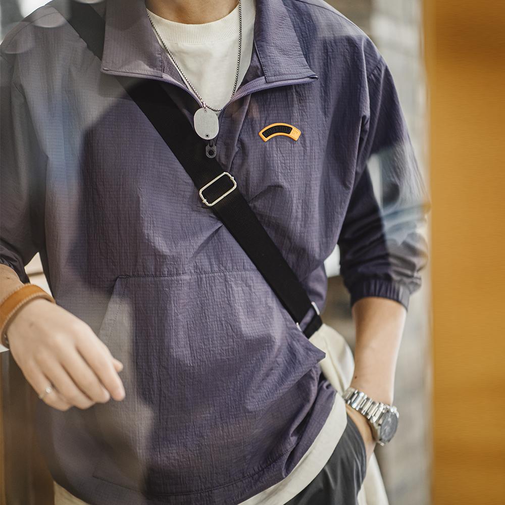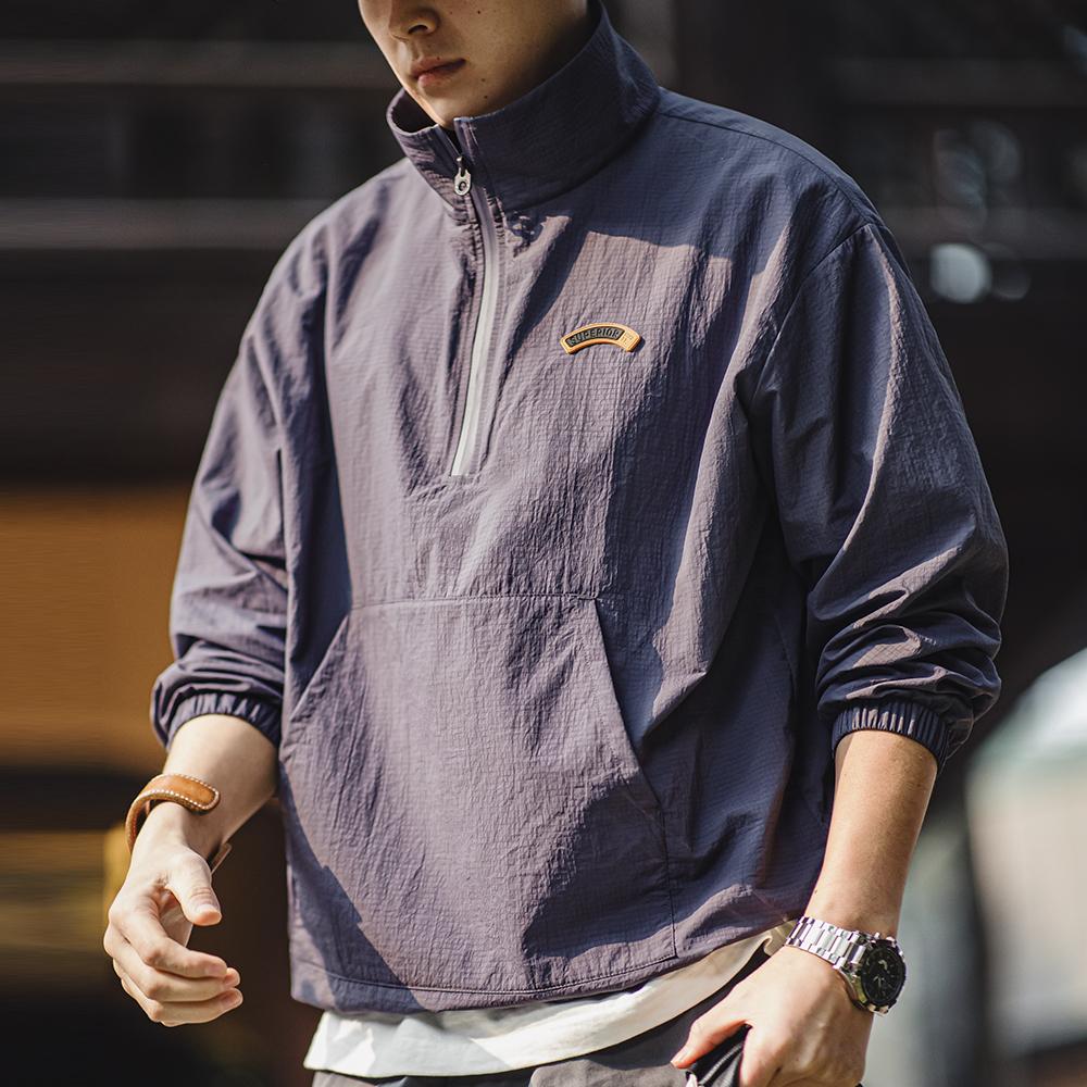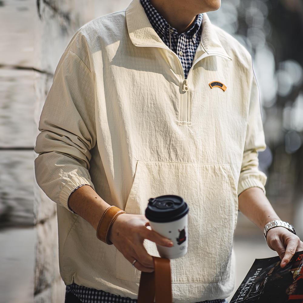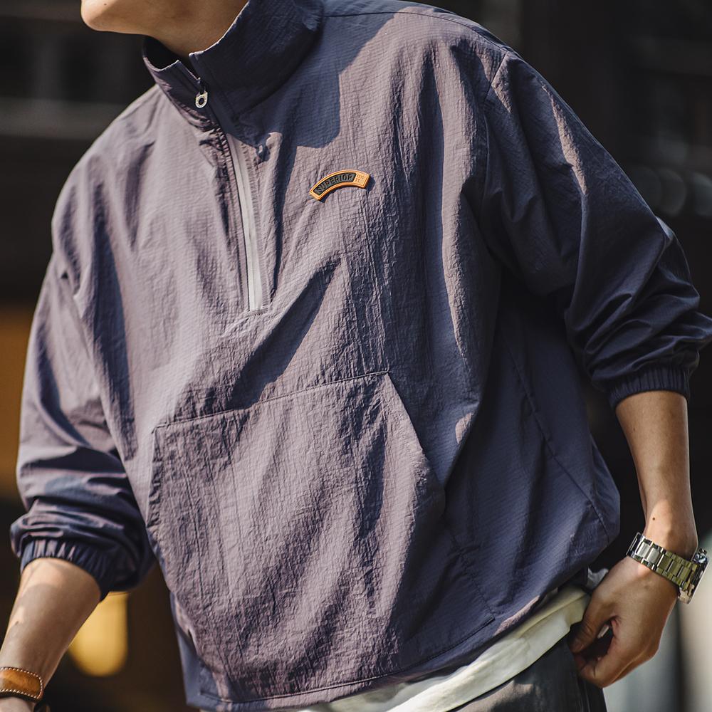 Retro Half-Zip Jacket Stand Collar Loose-fit Cityboy Hoodies Nylon Sports Coat