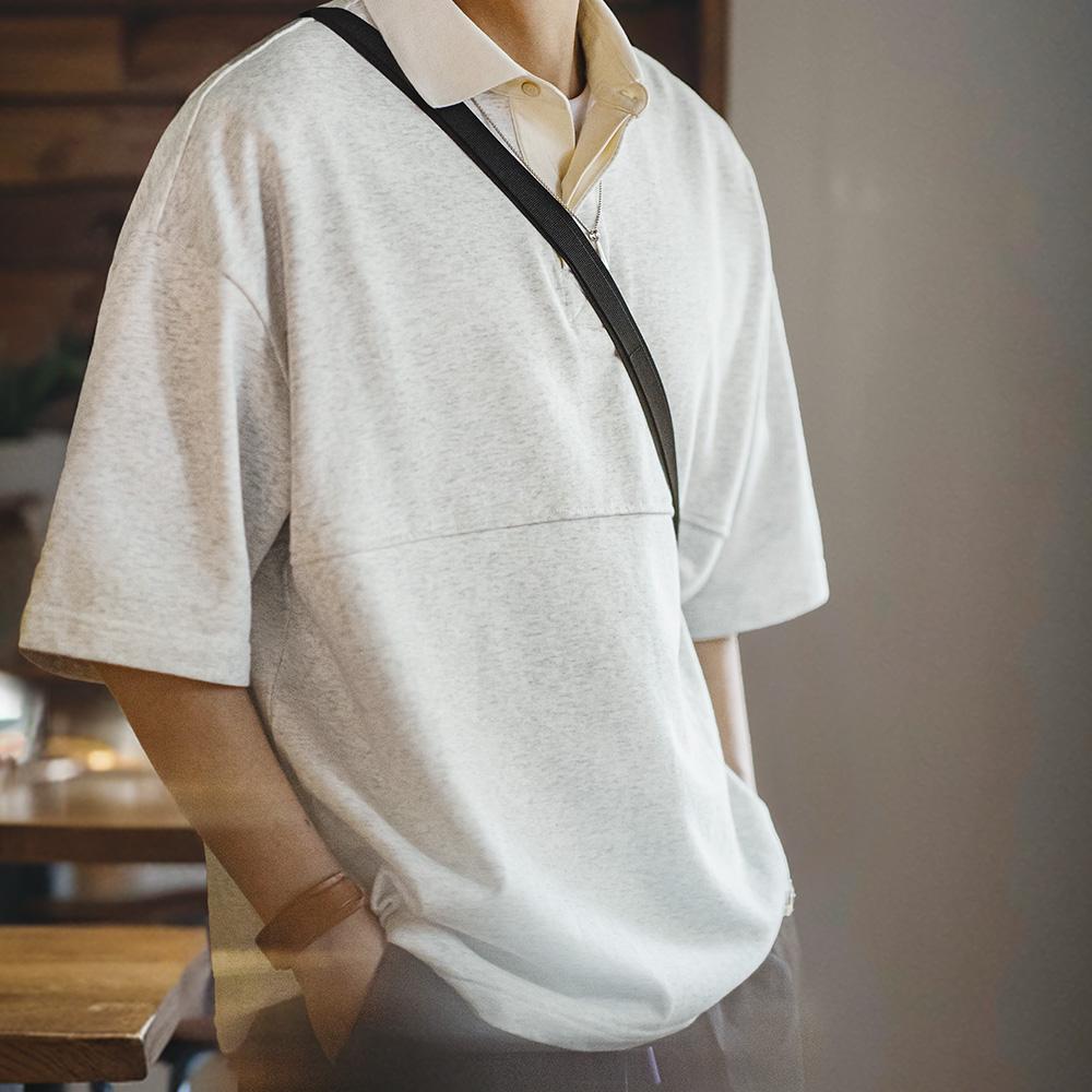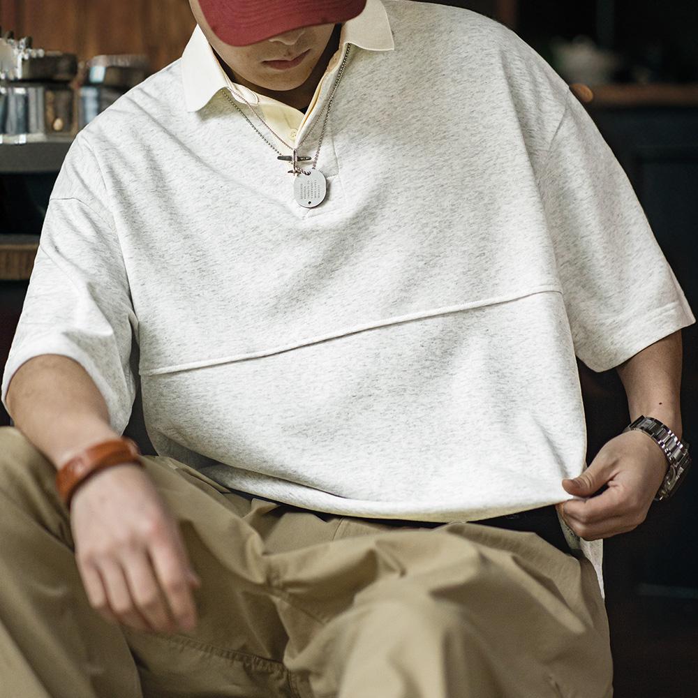 Retro Knitted Polo Shirt Lapel Collar Casual T-shirt for Men Summer Heavyweight Tshirts Uncle Fu Brand