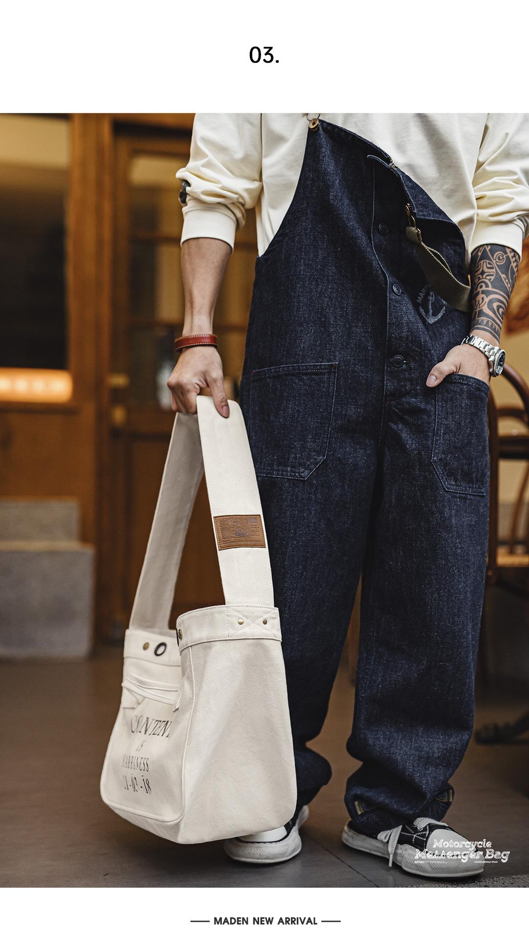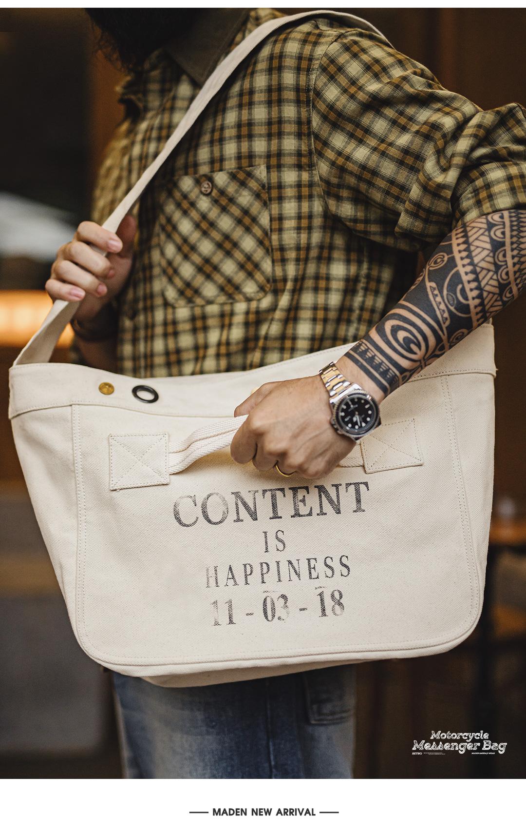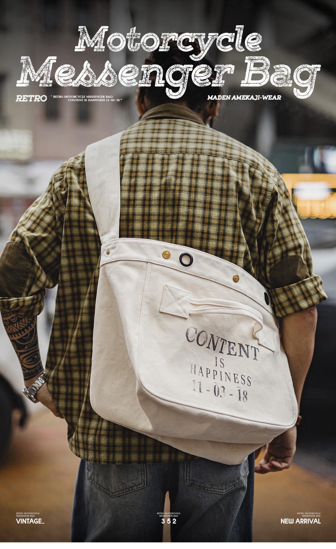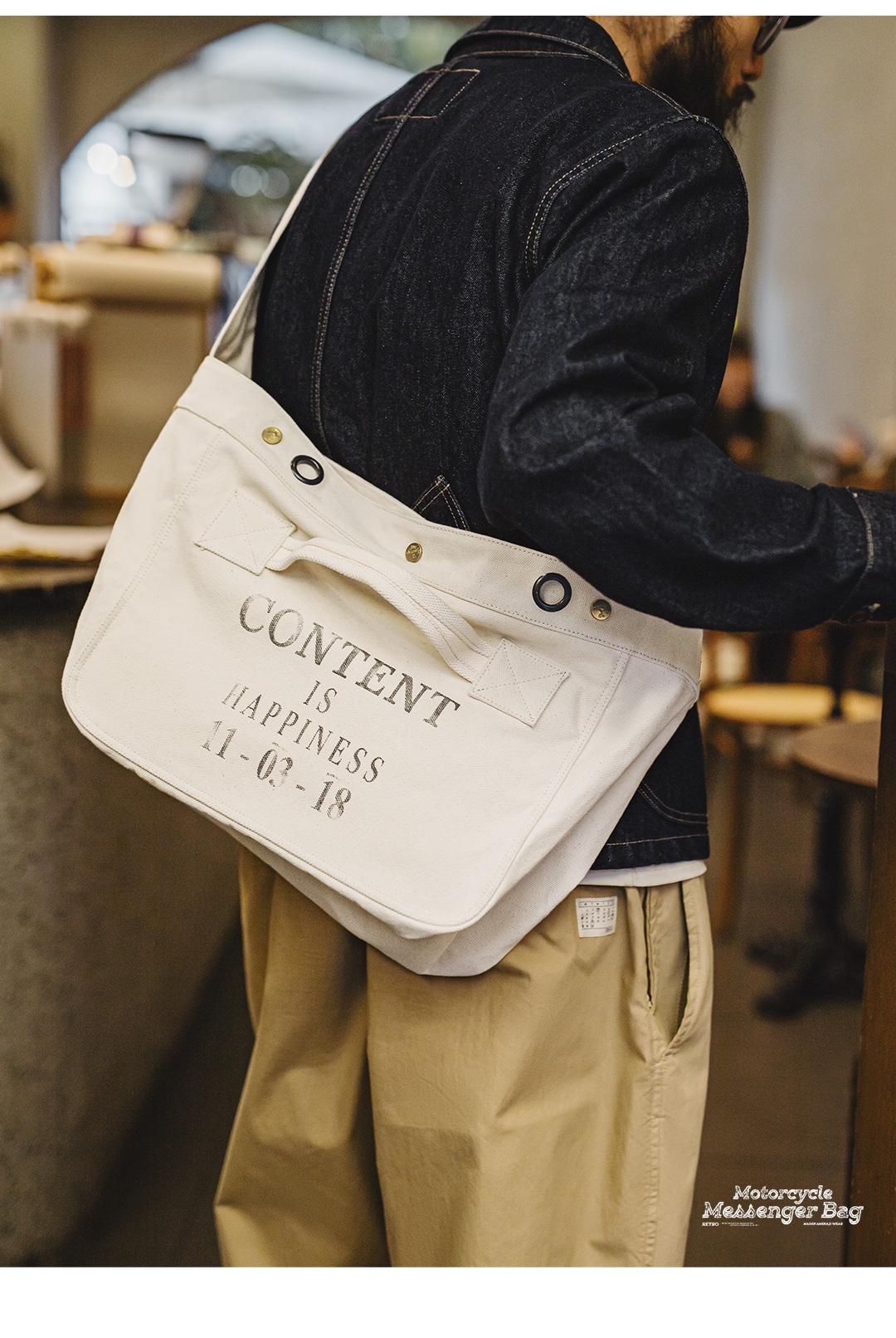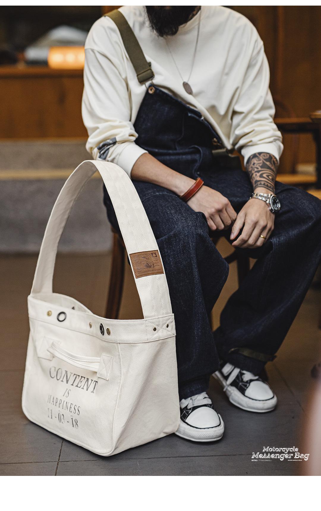 Retro Motorcycle Crossbody Bag Unisex Large Capacity Messenger Canvas Bag Letter Printed Design Retro Shoulder Bag