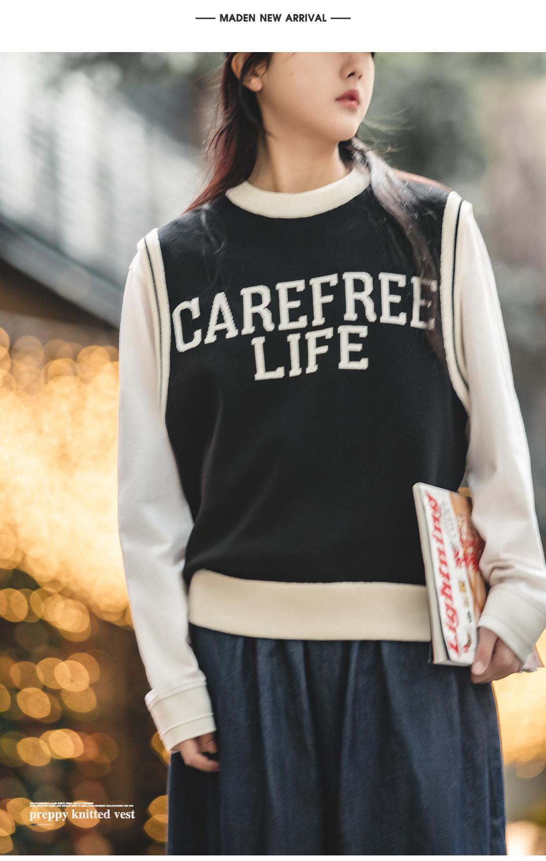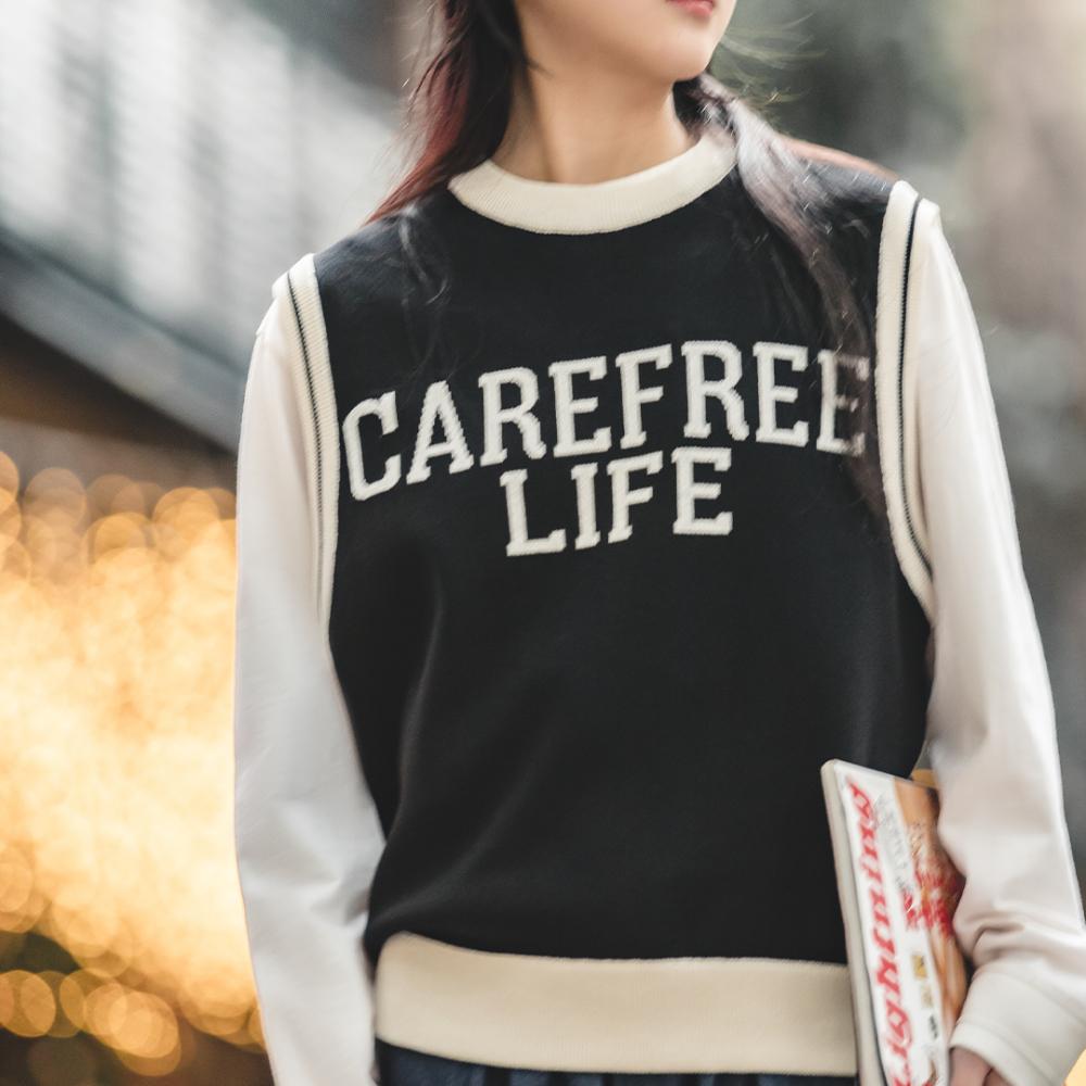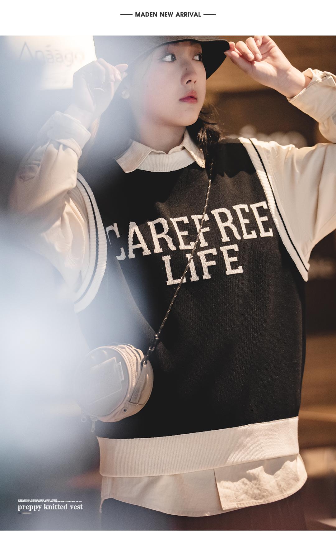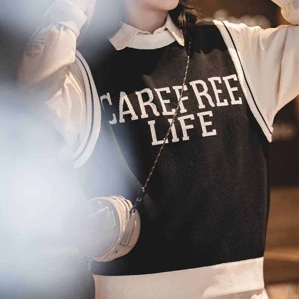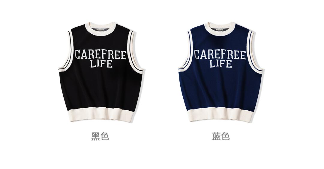 Unisex College Style Casual Knit Sleeveless Vest Black Round Neck Stretch Sweater Spring and Autumn Season Outer Vest Top