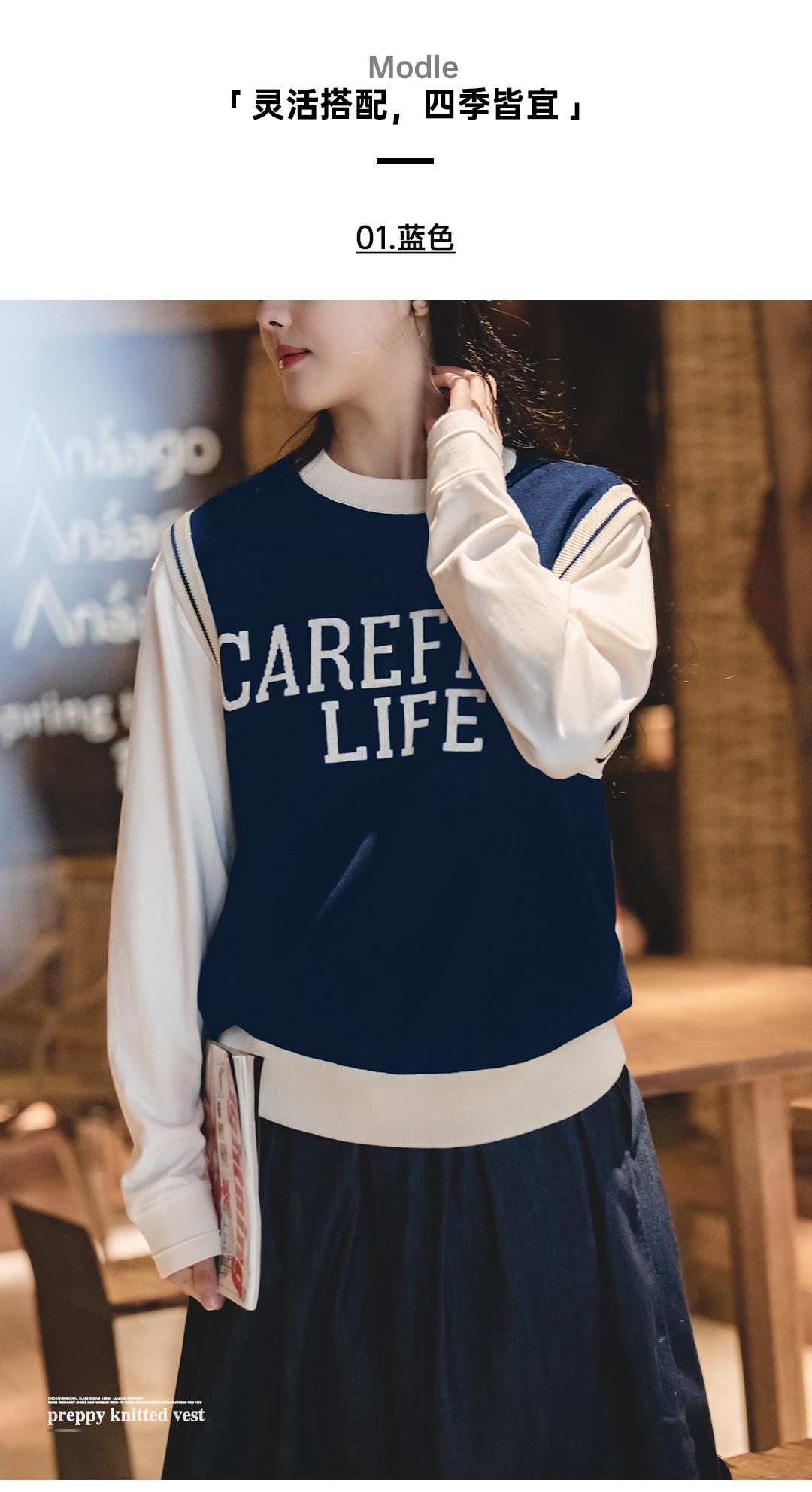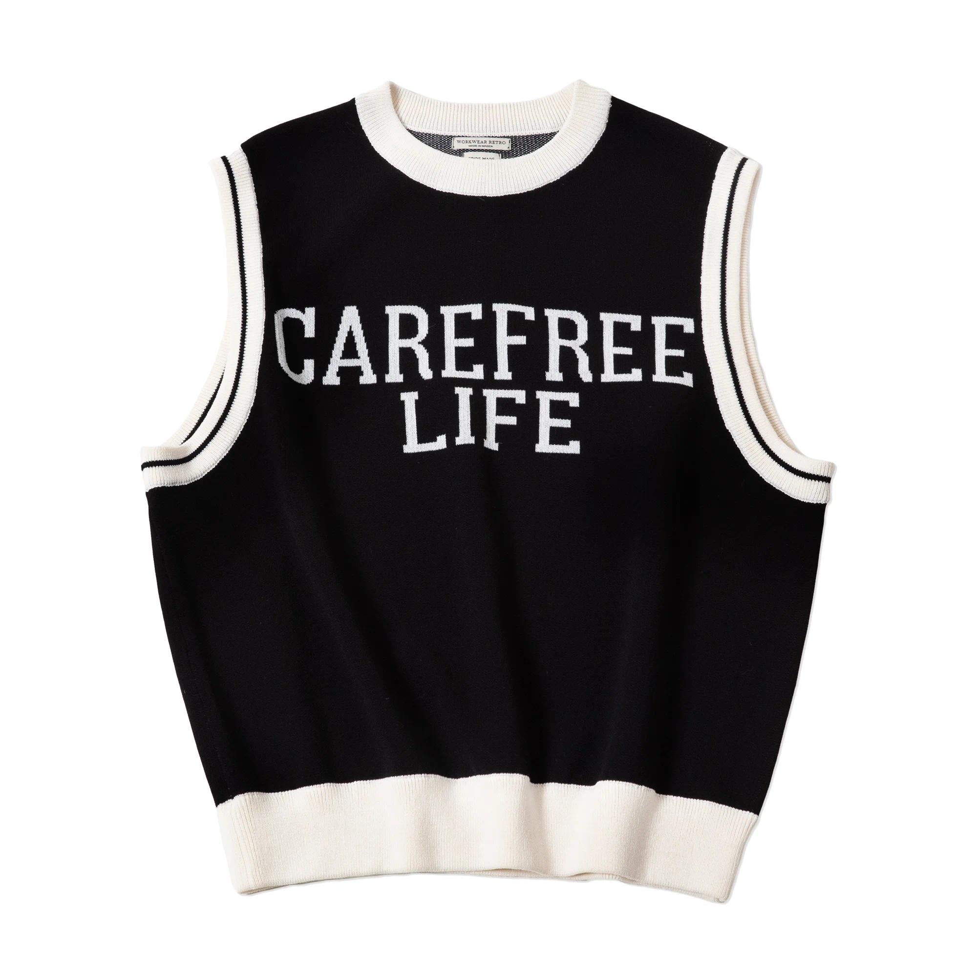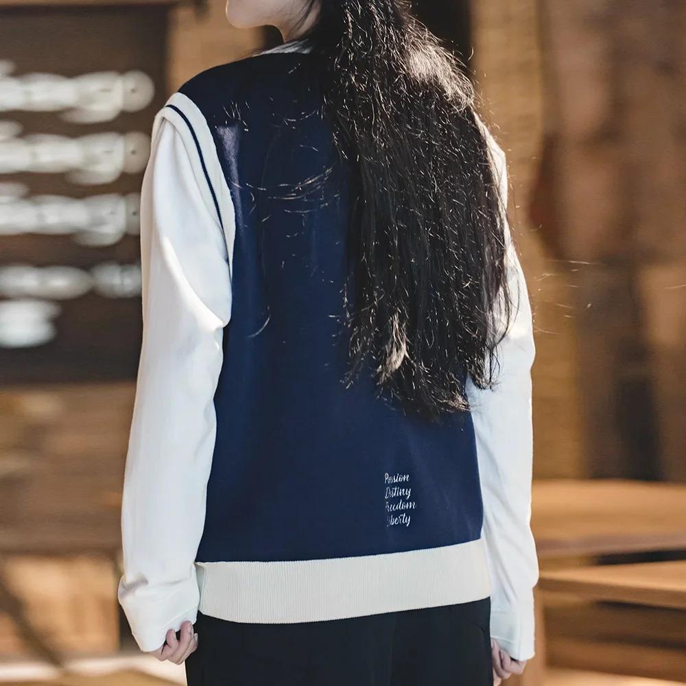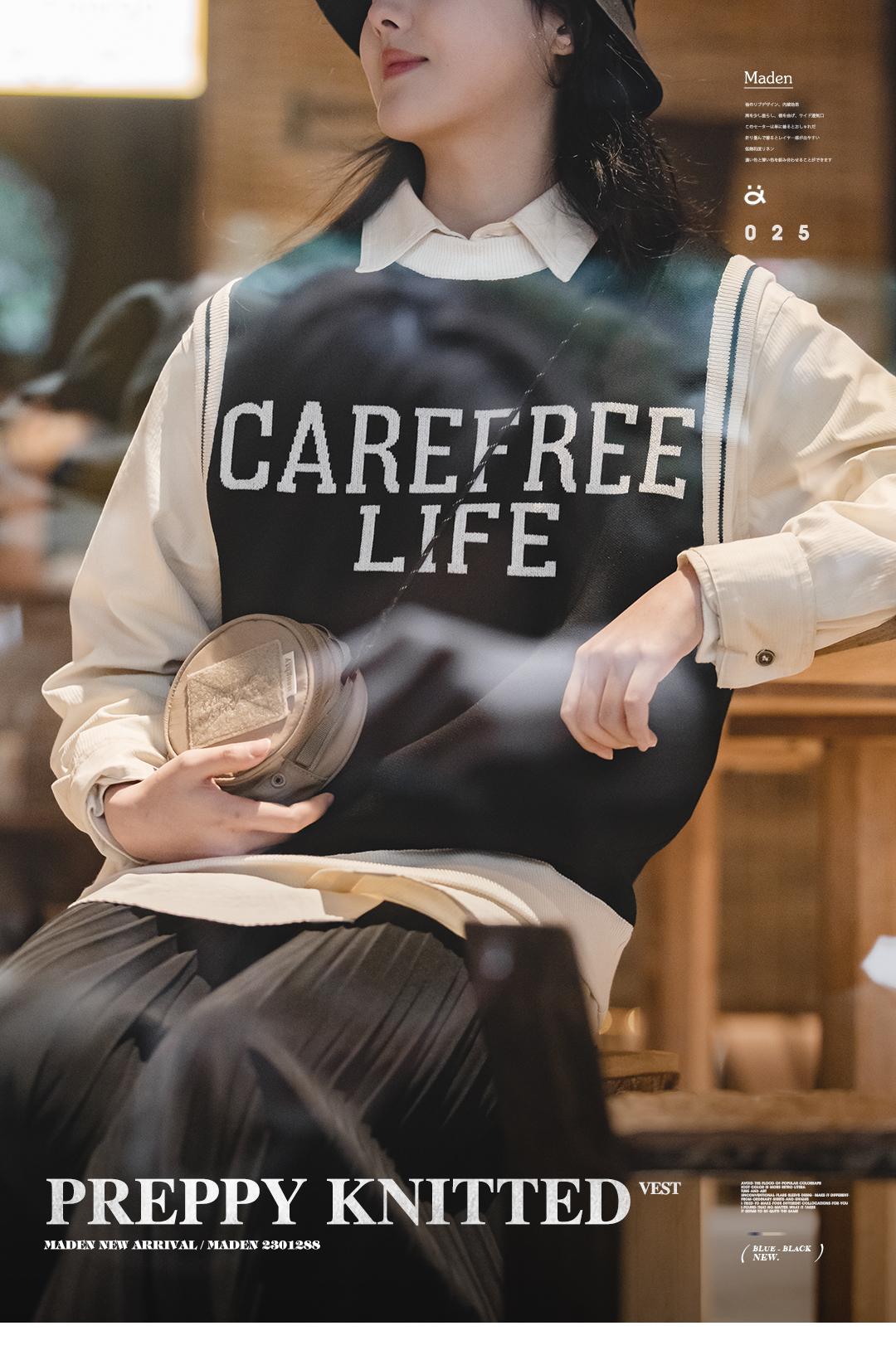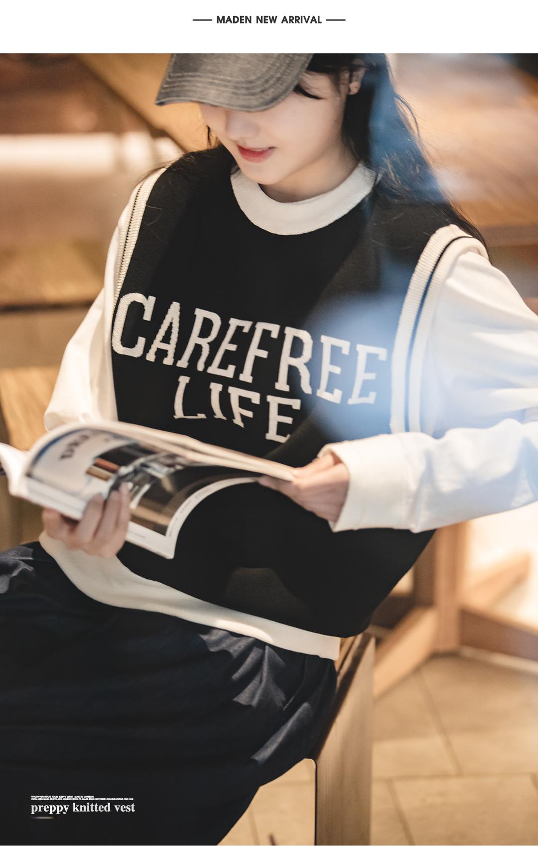 Unisex College Style Casual Knit Sleeveless Vest Black Round Neck Stretch Sweater Spring and Autumn Season Outer Vest Top