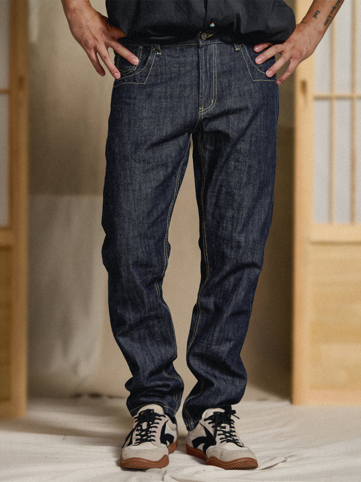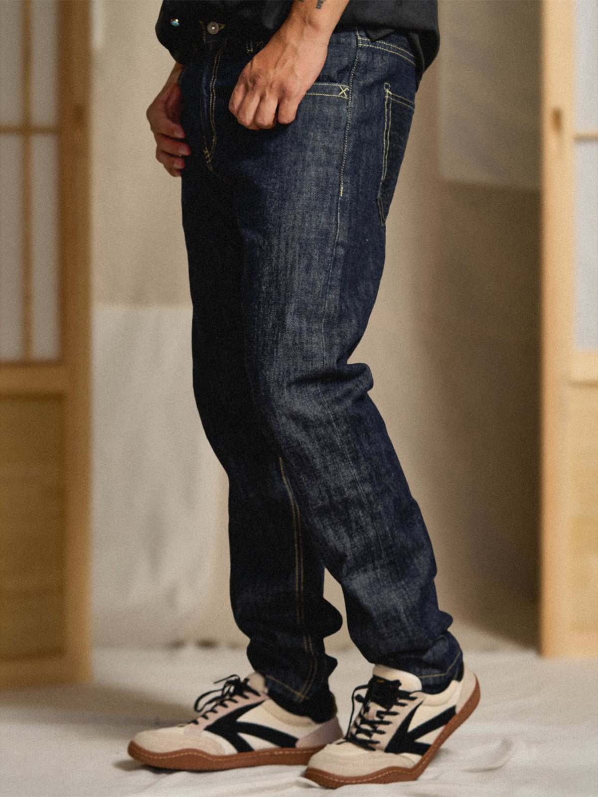Soft texture with a smooth touch is also achieved. By washing the finished product, it expresses a unique faded look (the so-called “atari” effect). It can be worn by people of all ages, from their 20s to 60s.