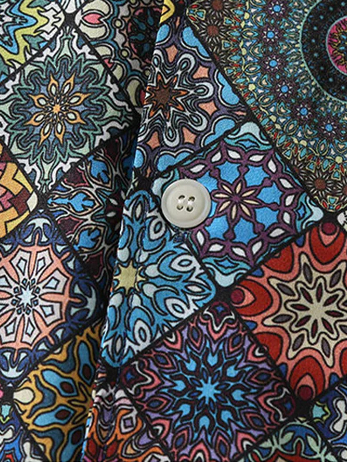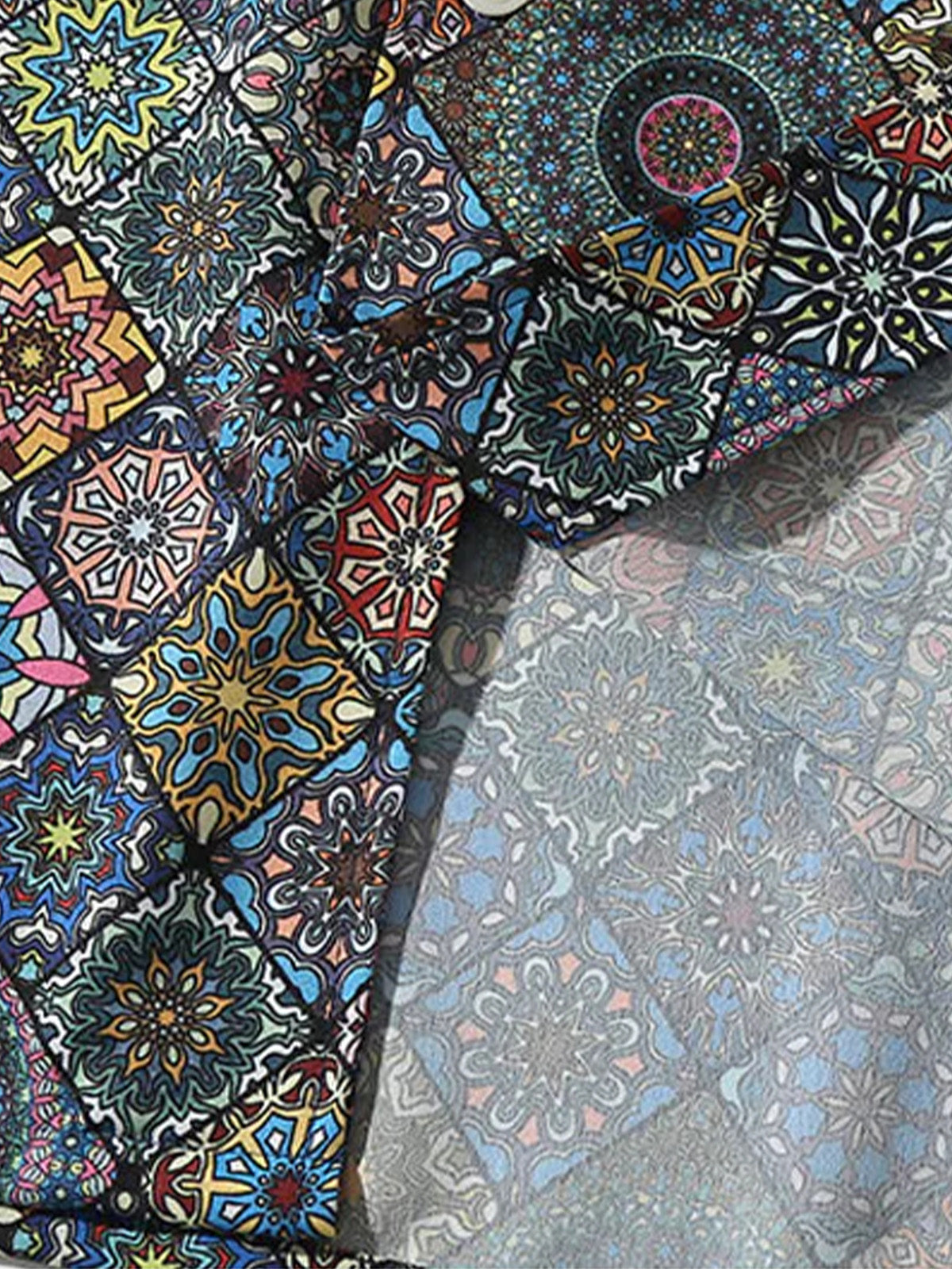 Design Concept: Inspired by kaleidoscope, this Hawaiian shirt with eye-catching and bright prints is designed. The coconut button on the front is a subtle embellishment that can inspire your sense of fashion. The wide collar, unique print and wide cuffs create a relaxed feeling. The chest is equipped with pockets with excellent storage capacity, which is convenient for storing necessary small items. Perfect for the upcoming hot season!