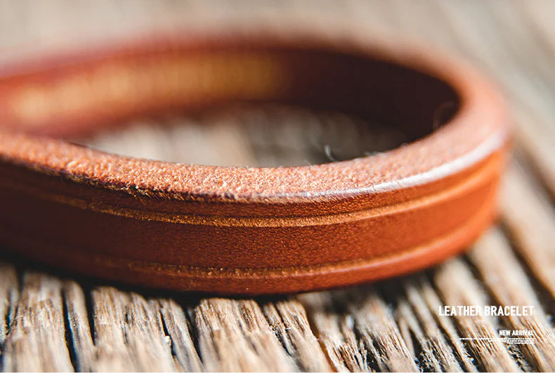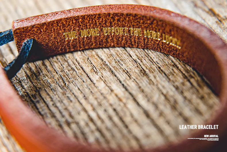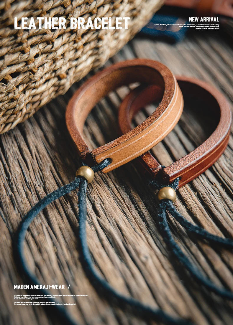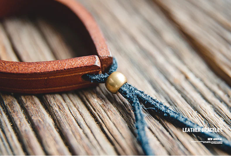 Opt for a leather bracelet to add a focal point to your outfit. This 6mm thick tanned leather bracelet features navy deerskin rope and copper beads, adjustable for a perfect fit, and exudes a vintage vibe that retro enthusiasts love. Over time, the leather develops a rich character and unique charm. With proper care, it gains a deeper red and brown hue.
