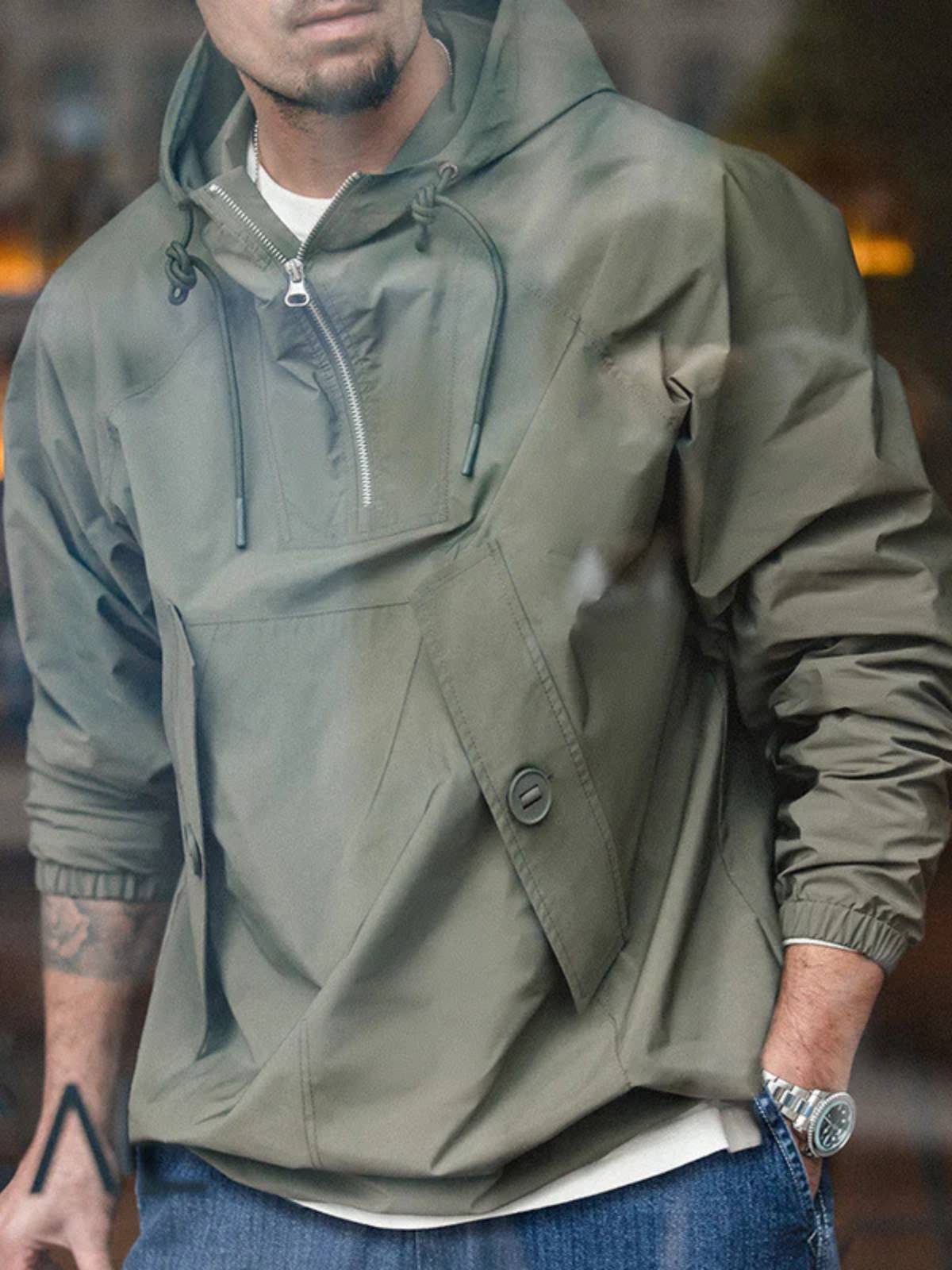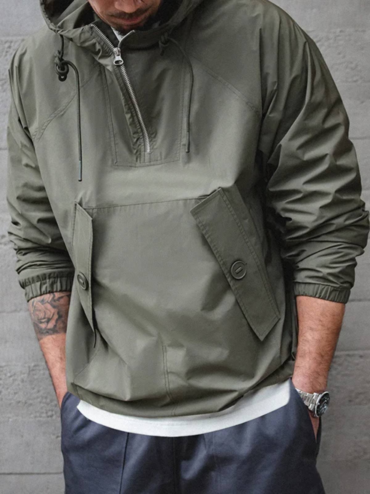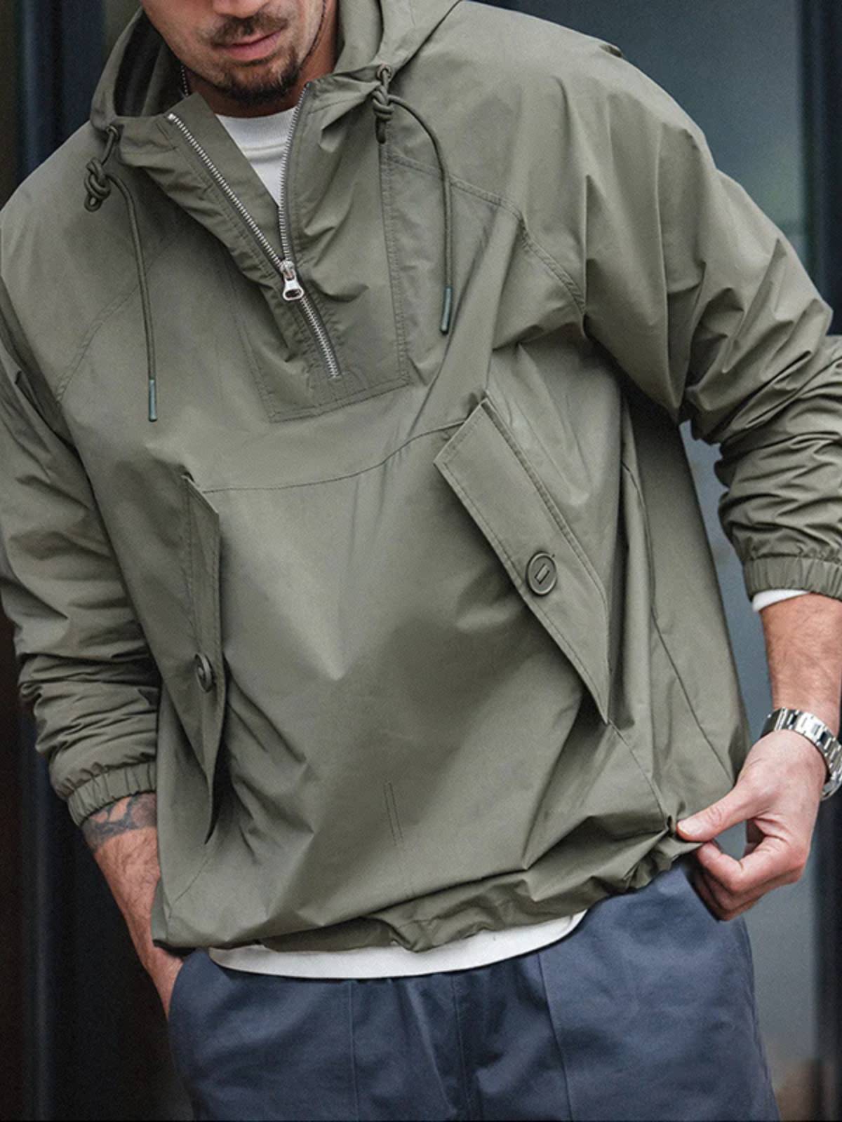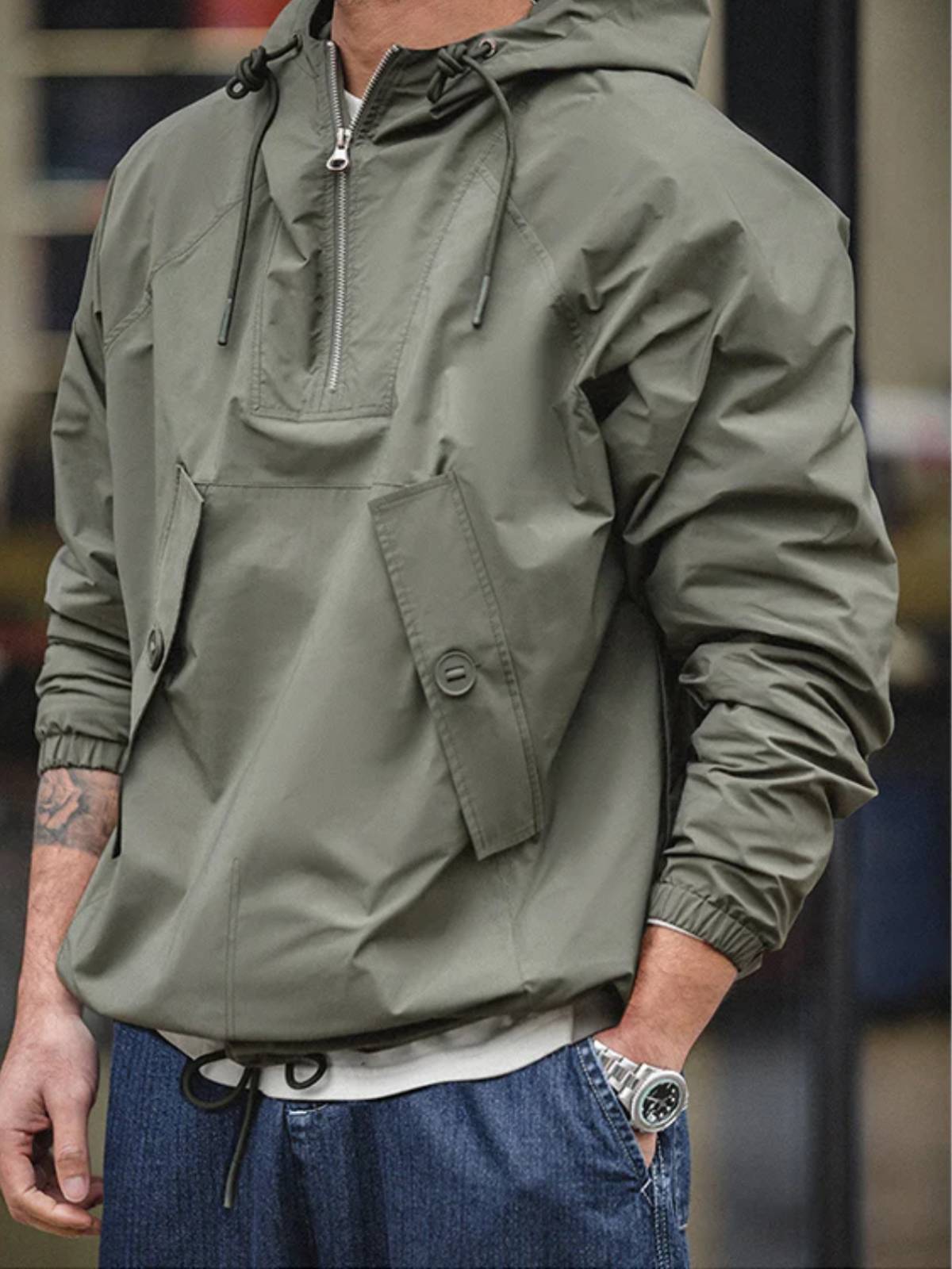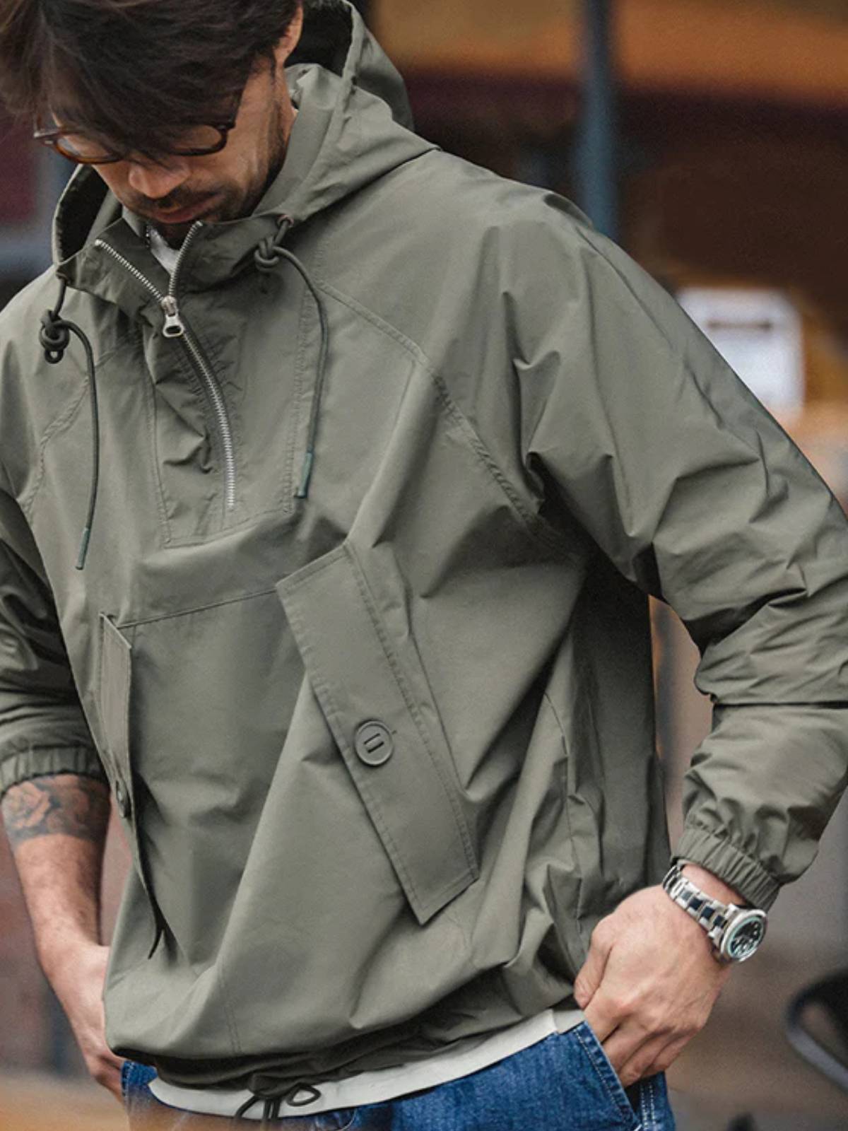 Inspired by the rare 1940s U.S. ARMY M-43 Mountain Troops Field Parka, this hoodie perfectly blends sporty casual style with military toughness. Its high collar, adjustable zipper, and drawstring hood enhance both functionality and design. Crafted from a comfortable polyester blend, the fabric offers a smooth, dry touch for a fresh and sporty look, ideal for casual outings or outdoor activities.