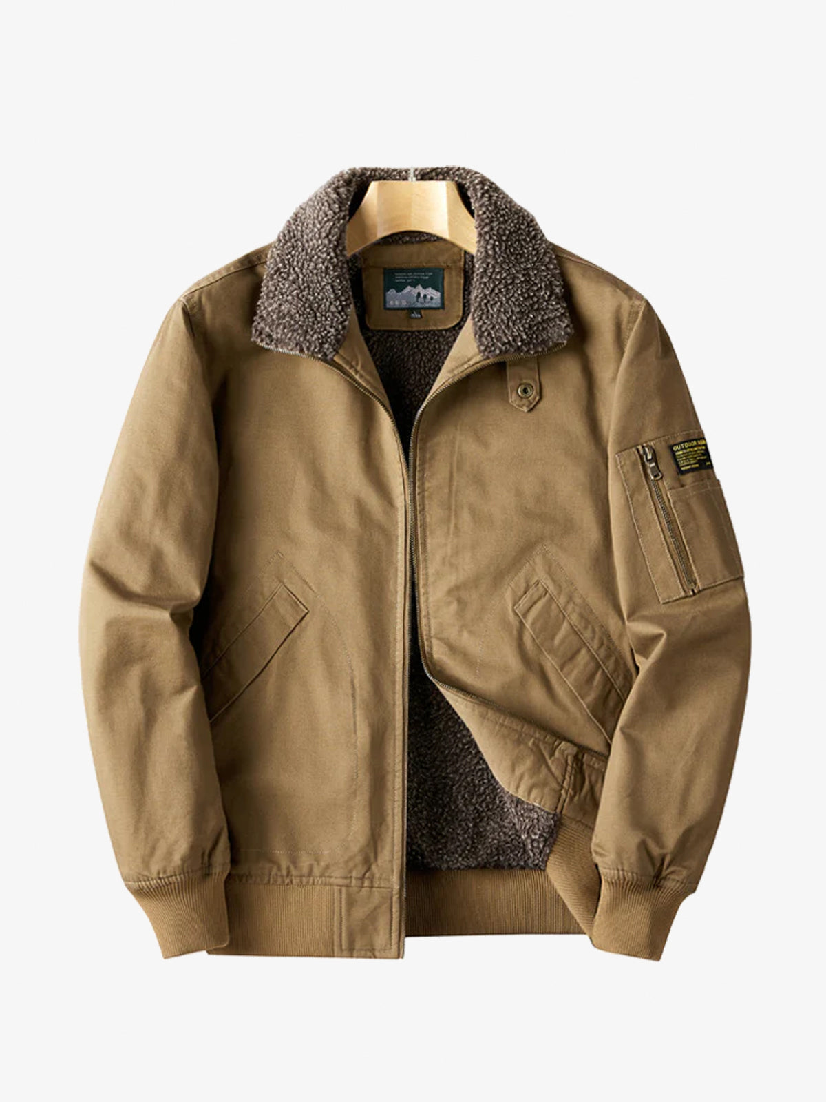 This aviator jacket features a stylish fold-over collar, adding elegance to the neckline for a refined look. The inner pocket is perfect for storing small items. Made from durable cotton, it offers warmth, breathability, and stretch for comfort. The soft lining ensures excellent durability and moisture-wicking properties. Pair it with cargo pants, slacks, or casual wear for versatile styling.