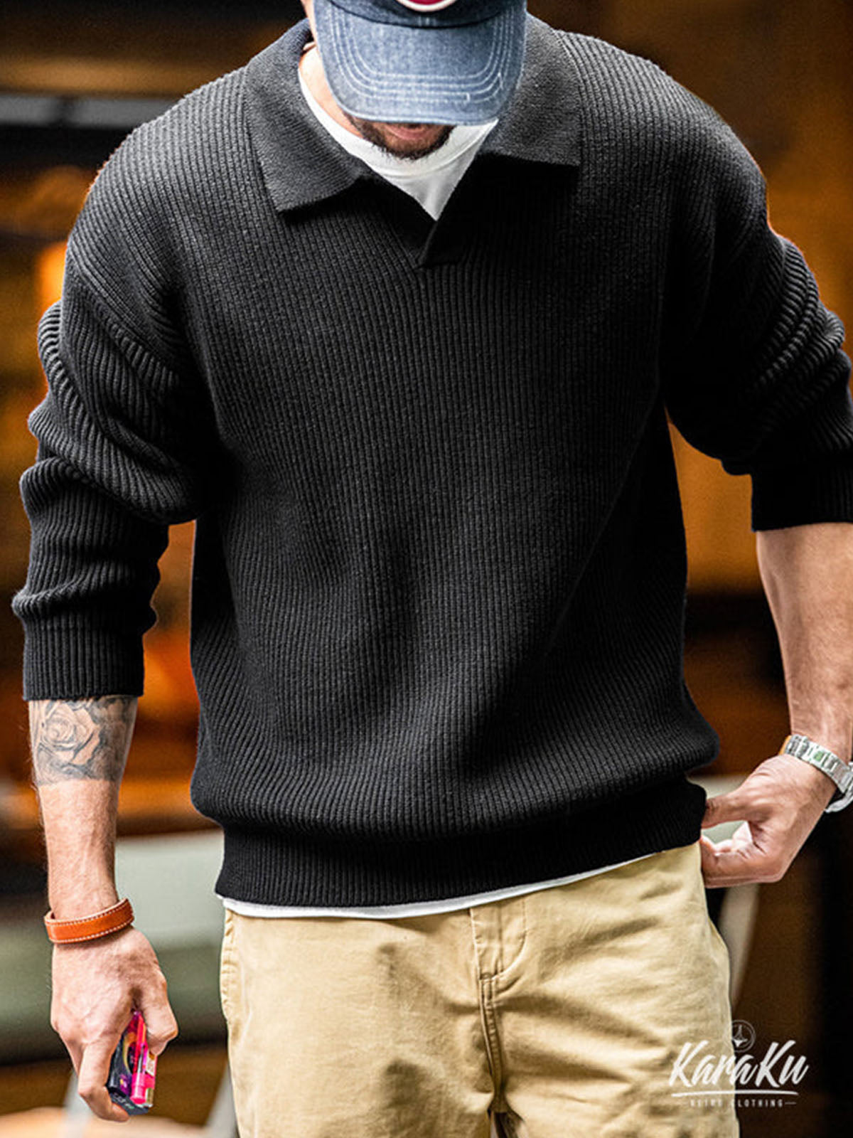 This retro sweater adds a vintage touch to your autumn and winter wardrobe. Made from a soft cotton blend, it features a loose fit with a loose neckline for comfort. Its breathable and moisture-wicking properties enhance wearability. Perfect for layering over shirts or pairing with straight denim, chinos, or wide-leg pants, this sweater offers versatile styling options for any occasion.
