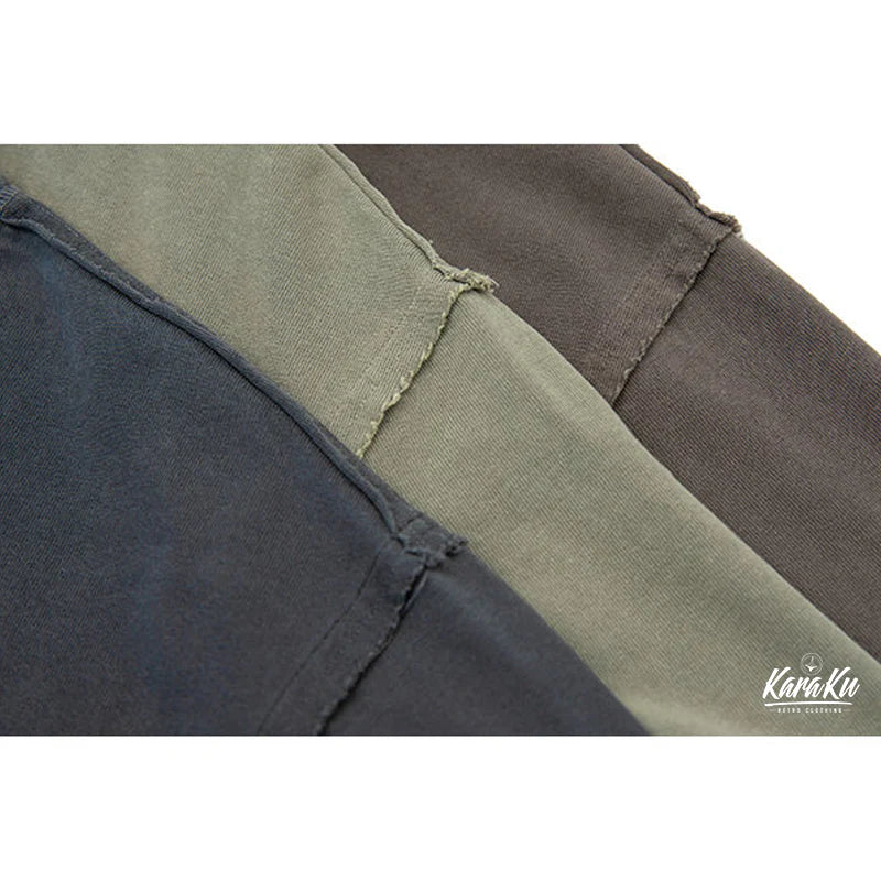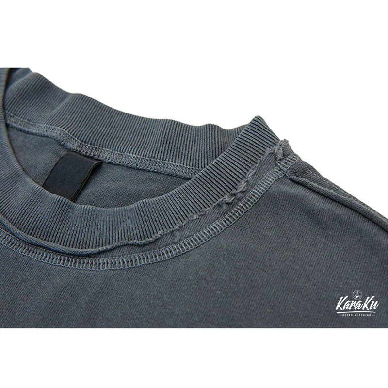 The subtly ribbed neckline adds a refined touch, while the design remains basic. Made primarily from heavy-weight cotton, its soft texture is gentle on the skin and boasts excellent sweat-absorbing and moisture-wicking properties, ensuring a fresh feel. The washing process creates a vintage look, adding a casual, workwear-inspired vibe. Perfect for daily casual wear or relaxed weekends.