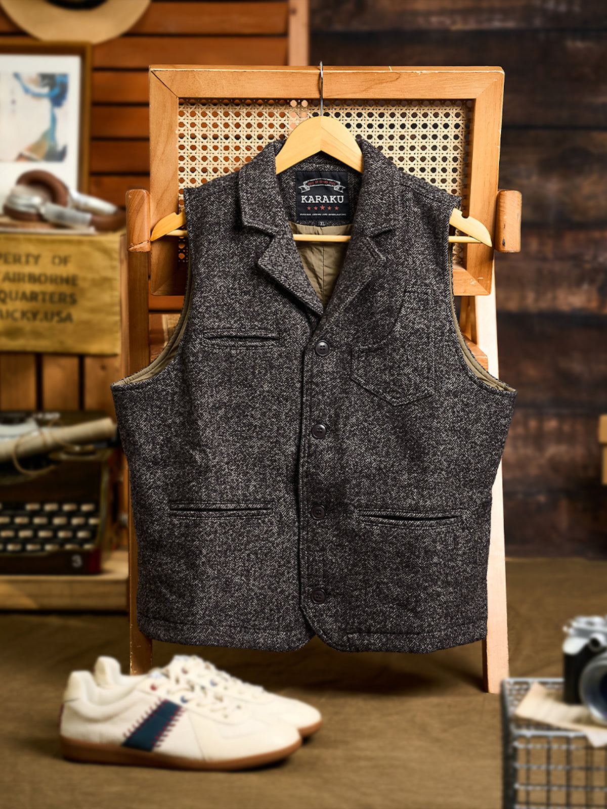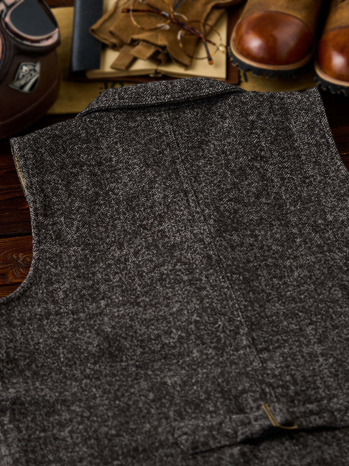 This vest features an improved shoulder cut for unrestricted movement and includes four front pockets and an inner pocket size. Crafted from a soft blend of wool, it offers warmth, moisture absorption, and minimal itchiness. With a vintage-inspired button and an adjustable back belt, this high-quality vest suits casual business styles, layering seamlessly with coats or shirts for versatile elegance.