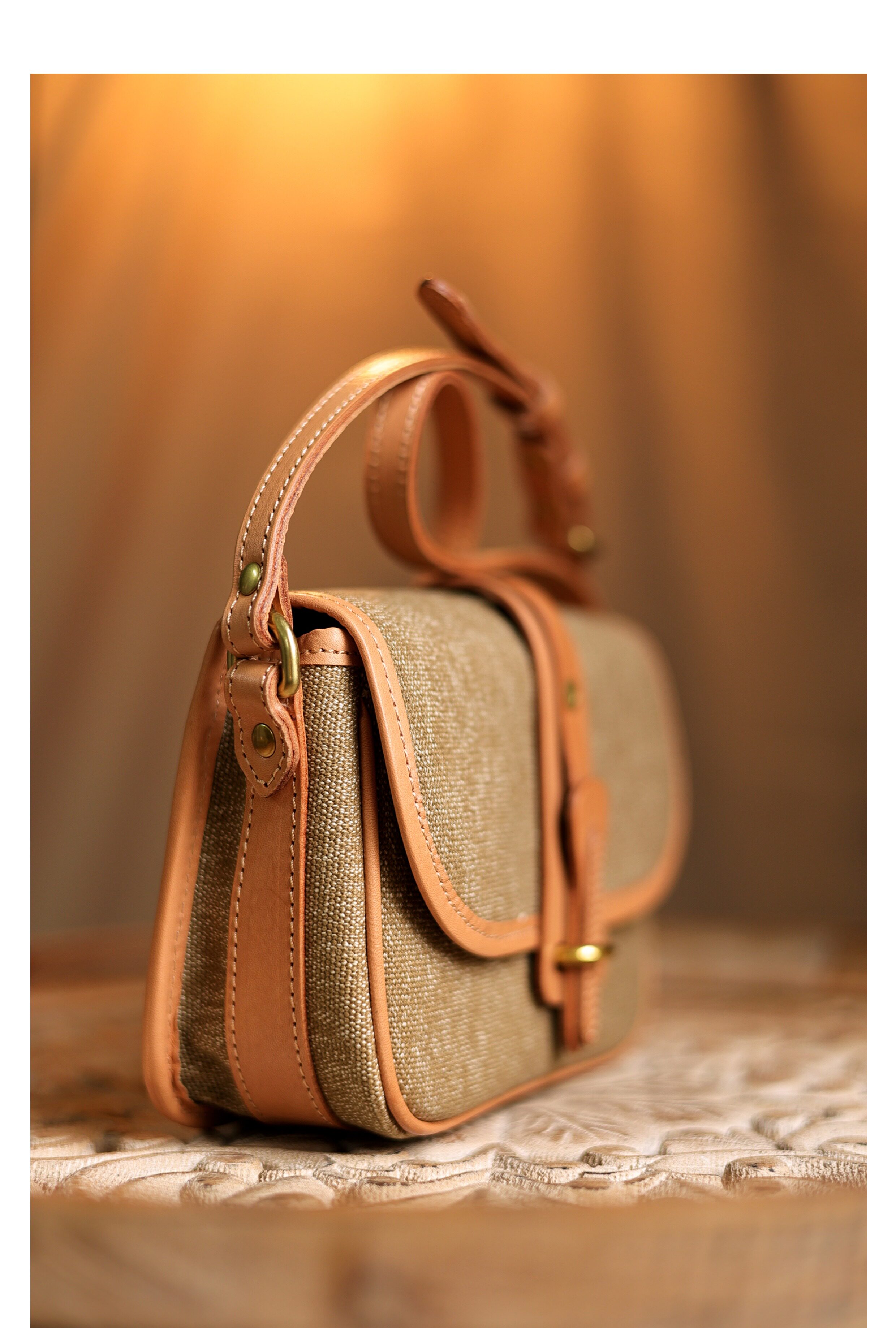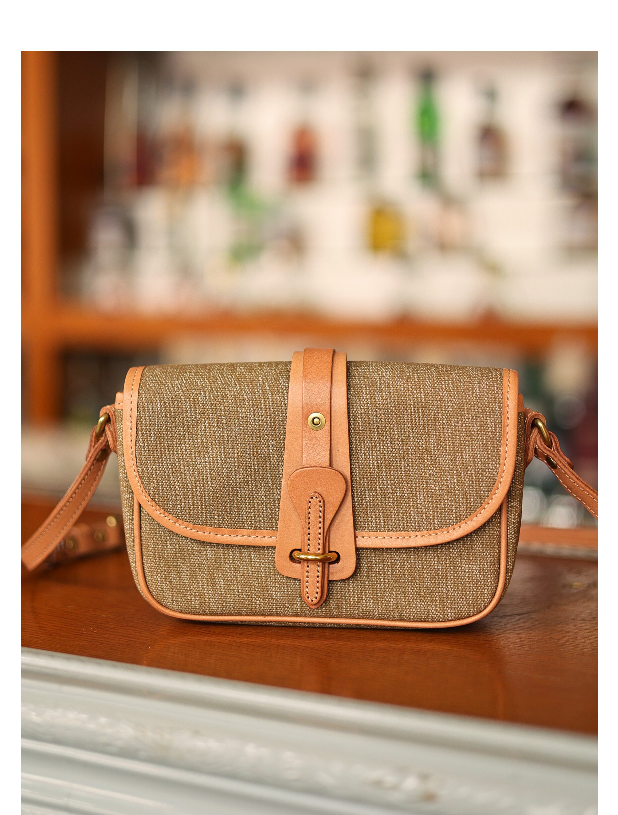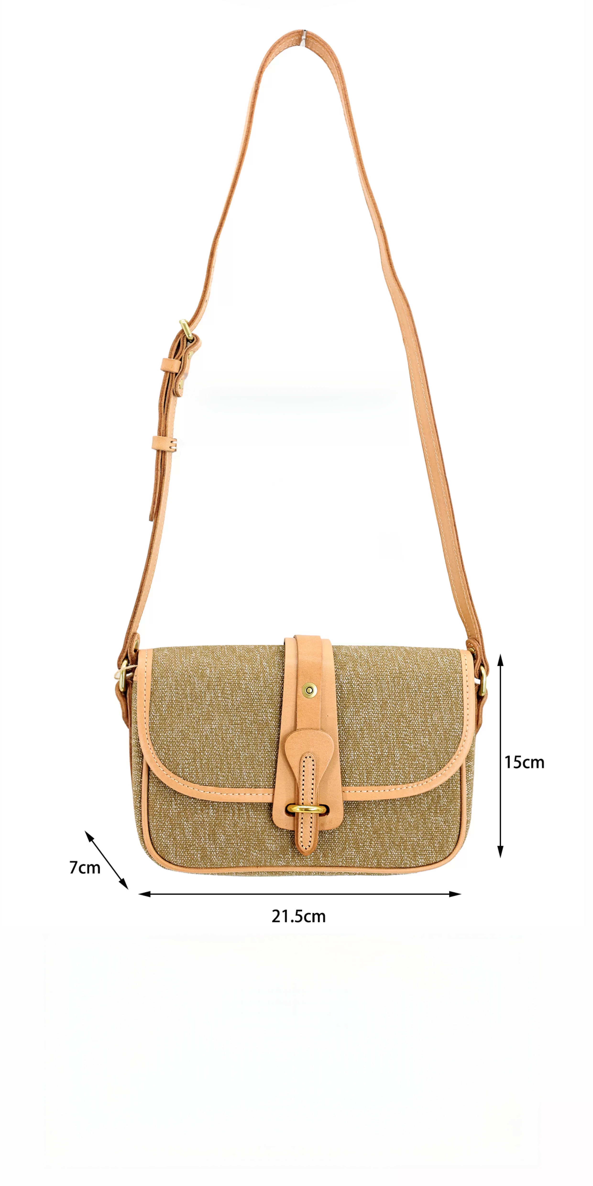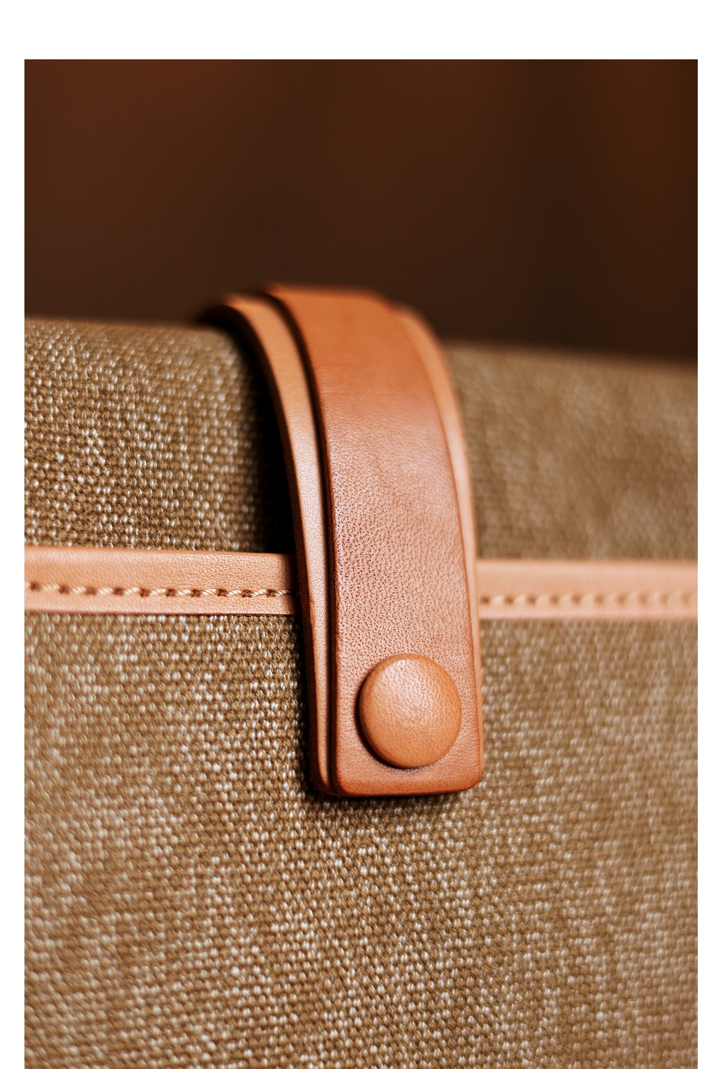 ✔️ The material is salt-and-pepper canvas + top-grain vegetable-tanned cowhide