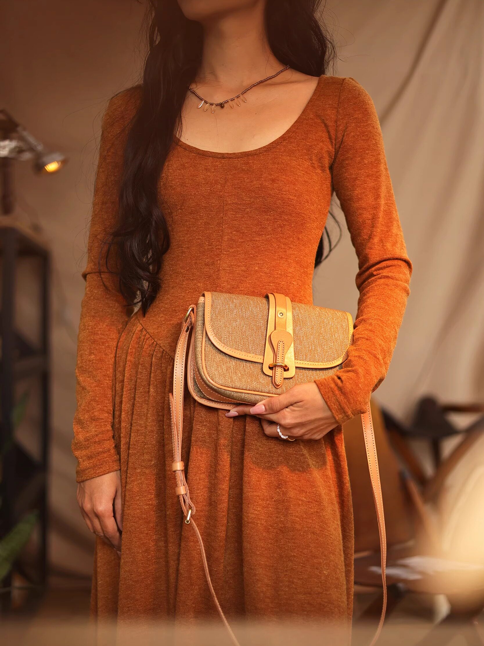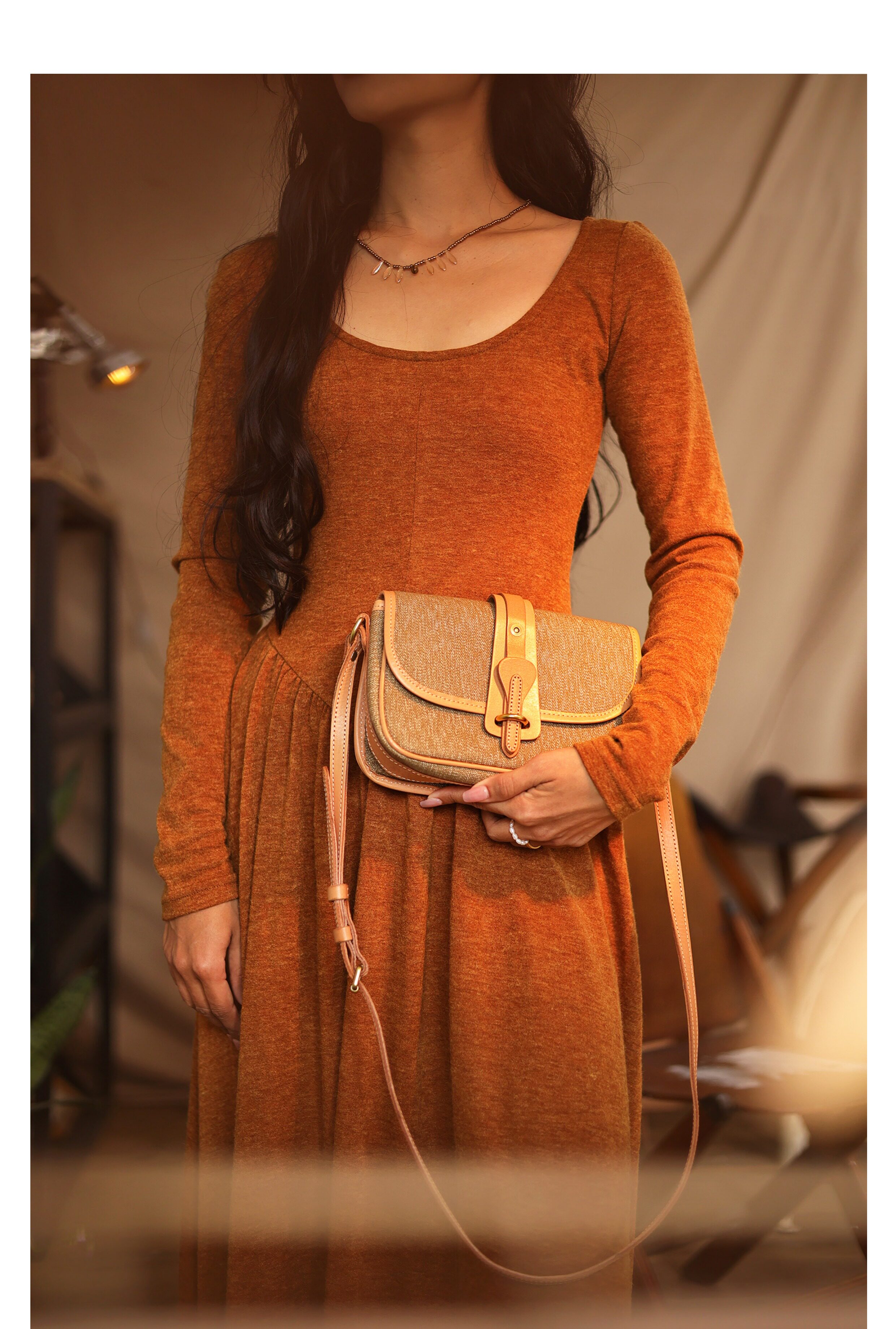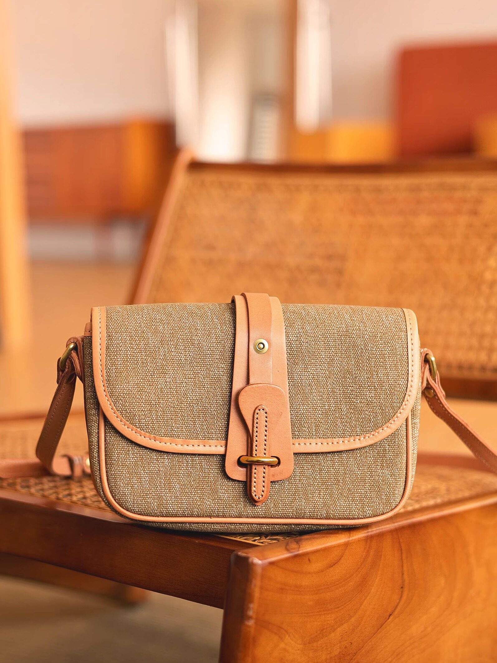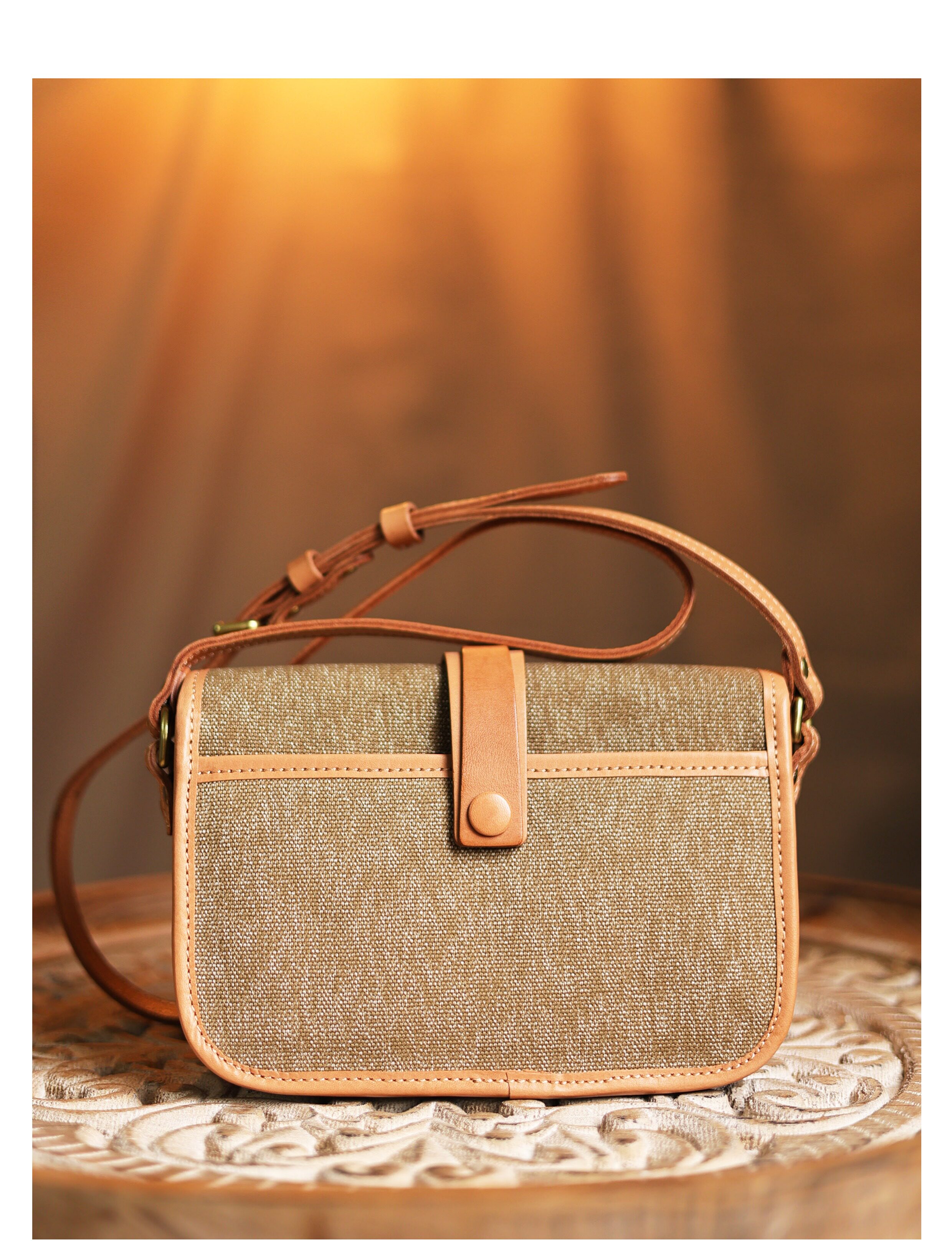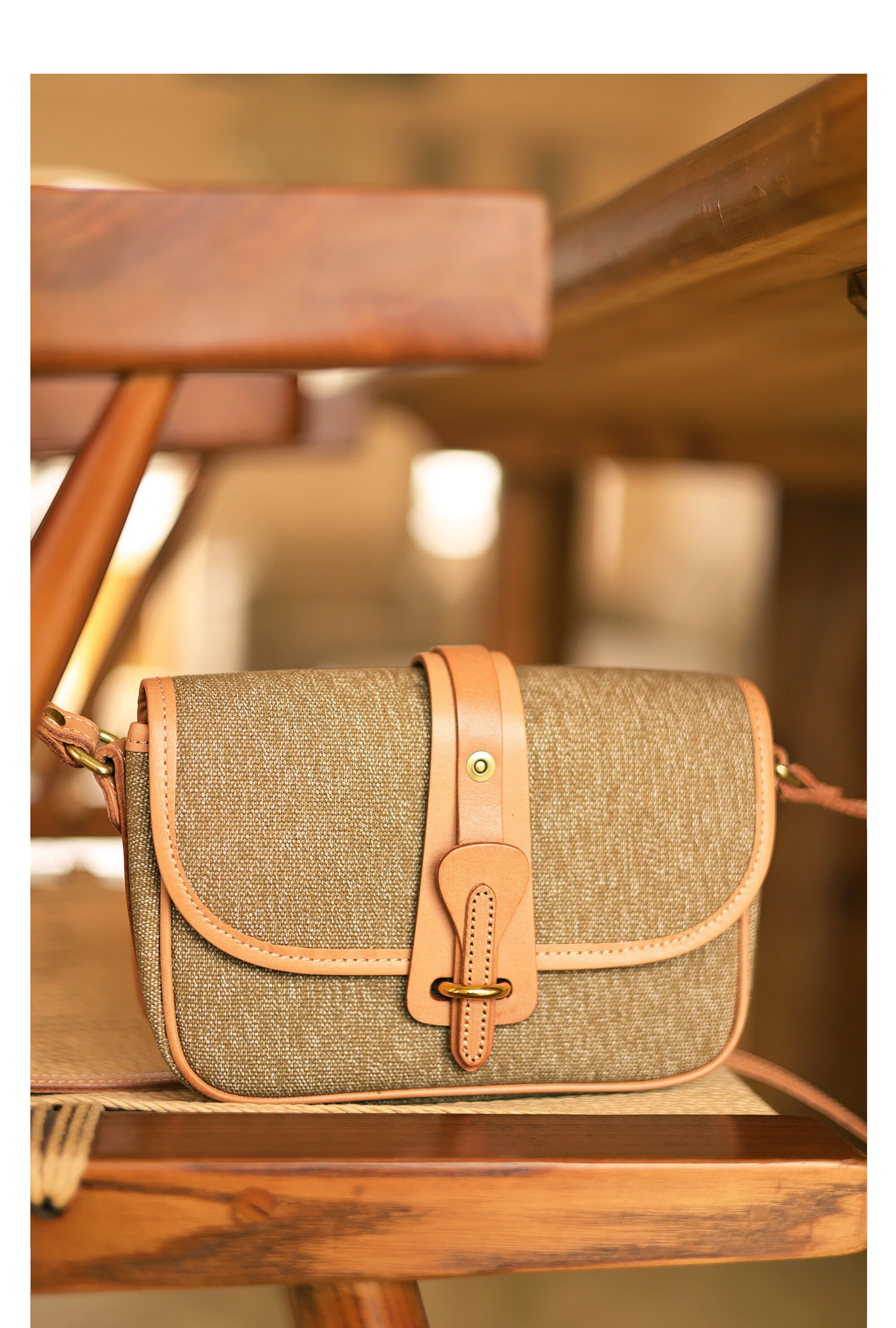 ✔️ The material is salt-and-pepper canvas + top-grain vegetable-tanned cowhide