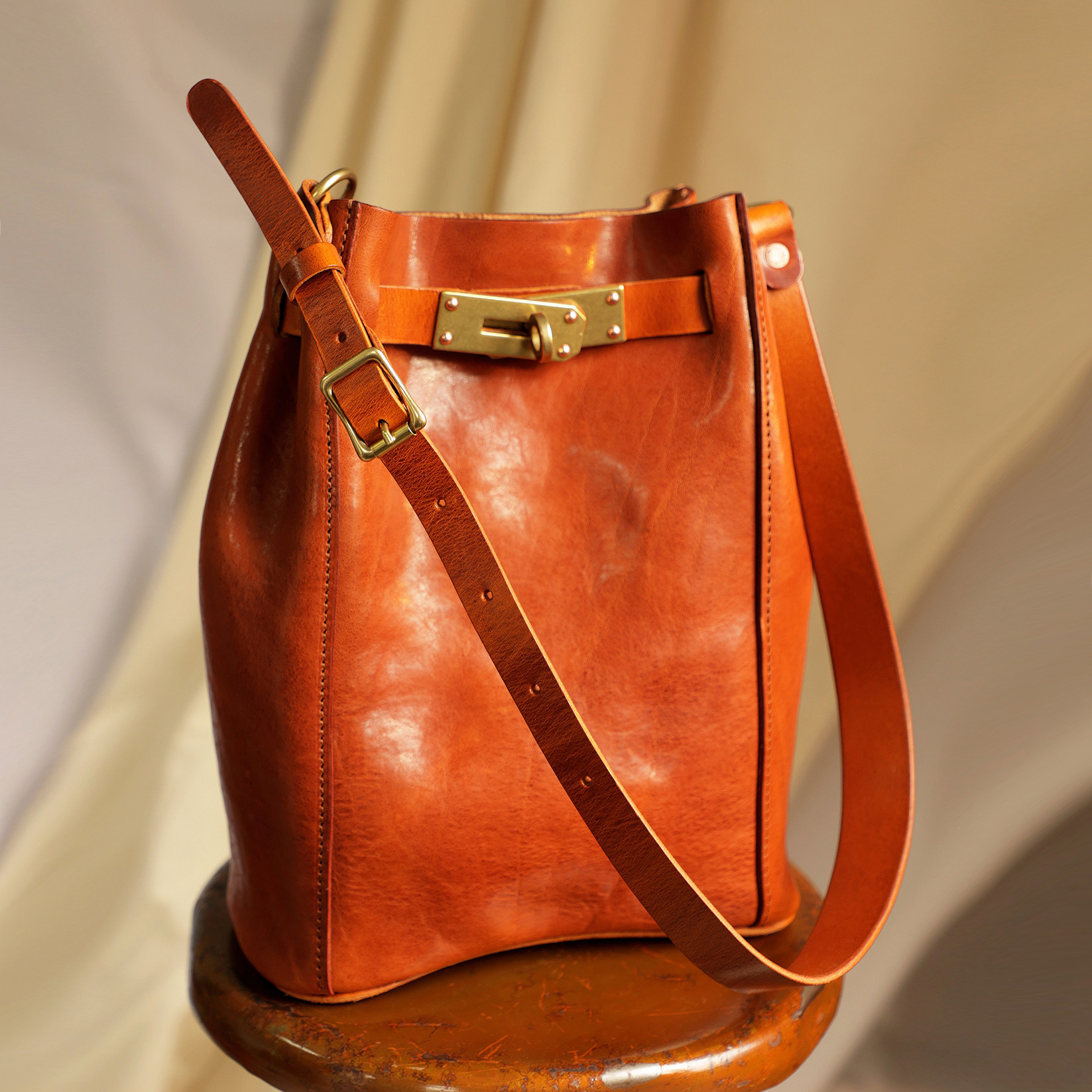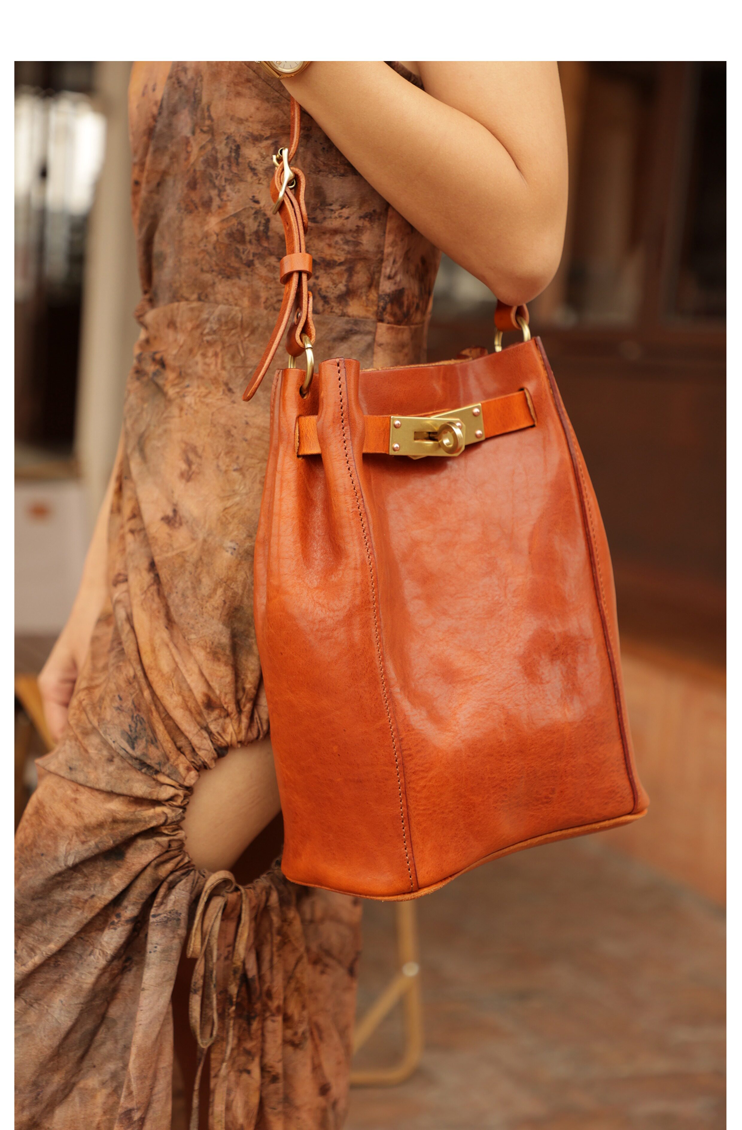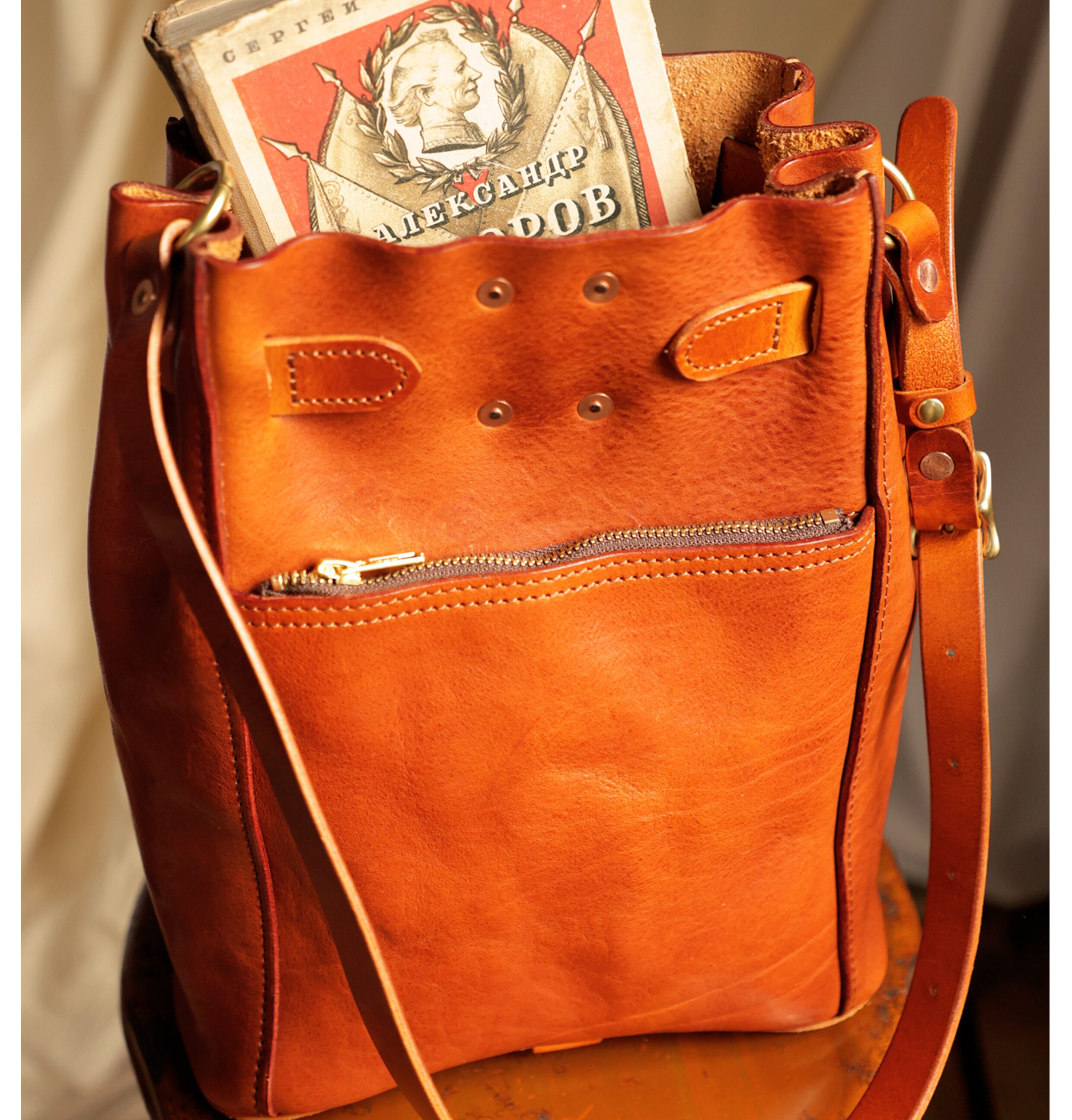 ✔️ The leather is made of Italian Tuscan top-grain vegetable-tanned cowhide