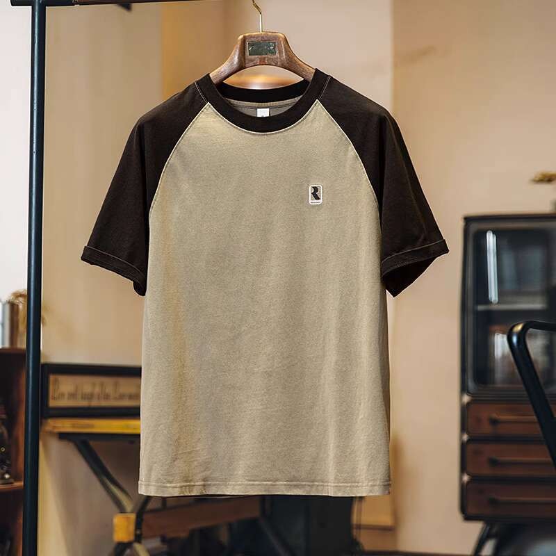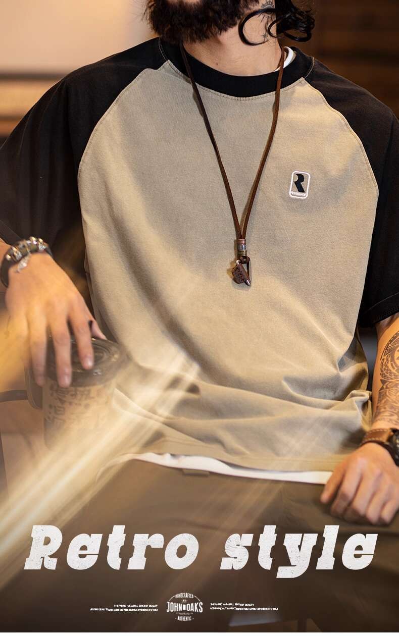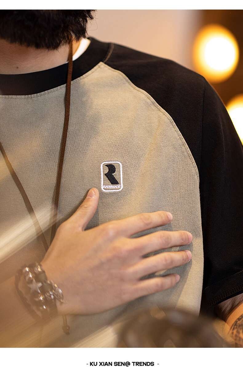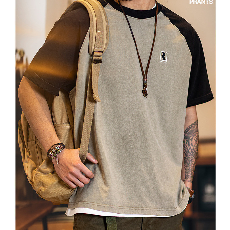 2025 Summer New Style Pure Cotton Short-Sleeved t-Shirt Men Slightly Loose American Casual Half-Sleeved Contrast Color Round Neck Top Men Style