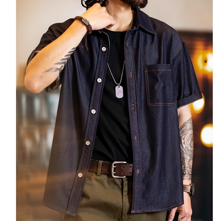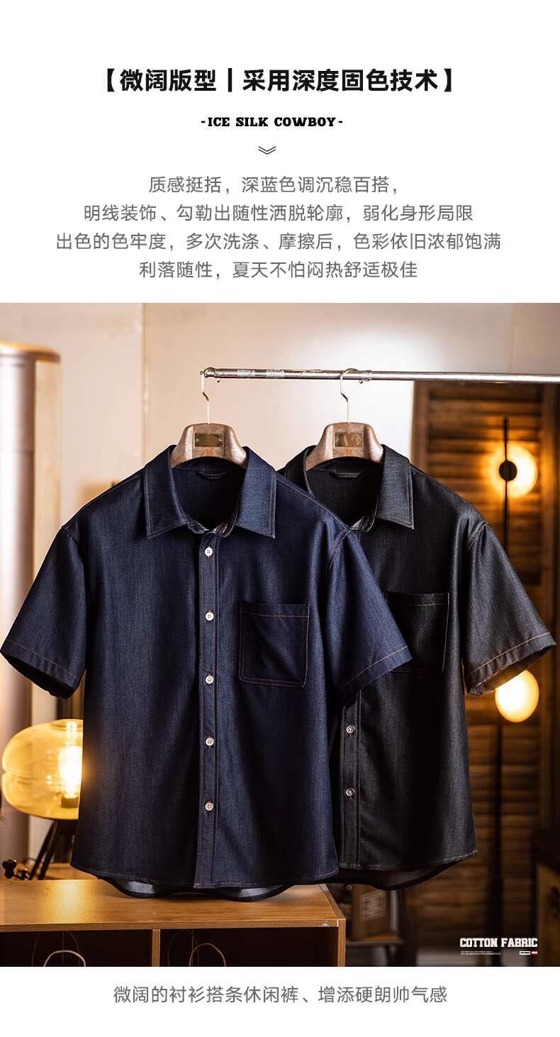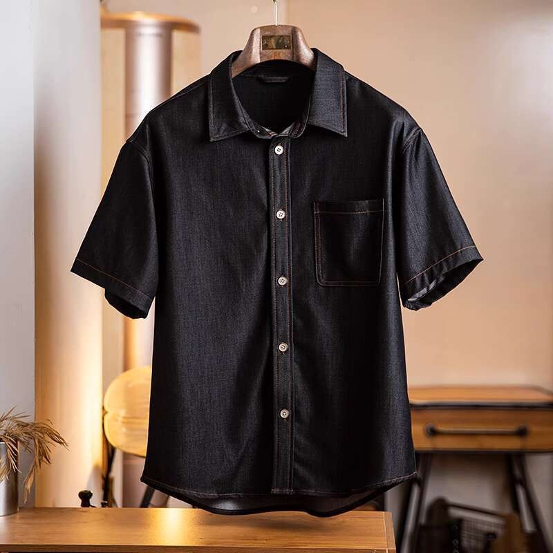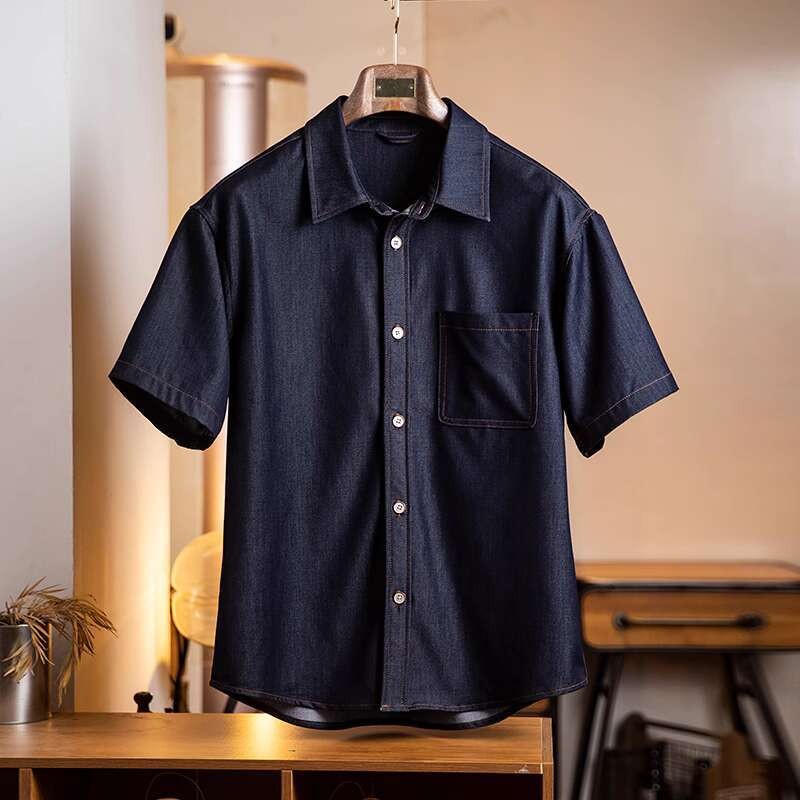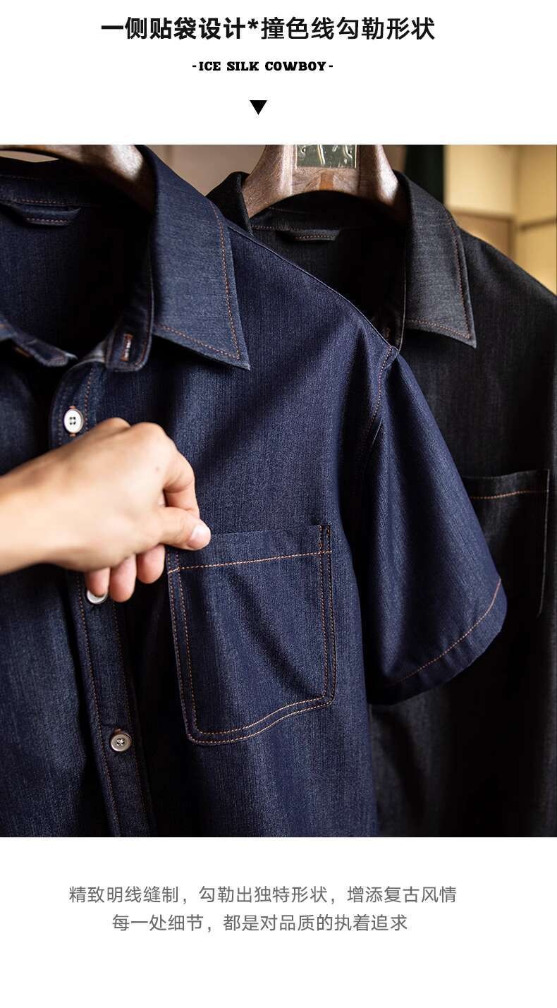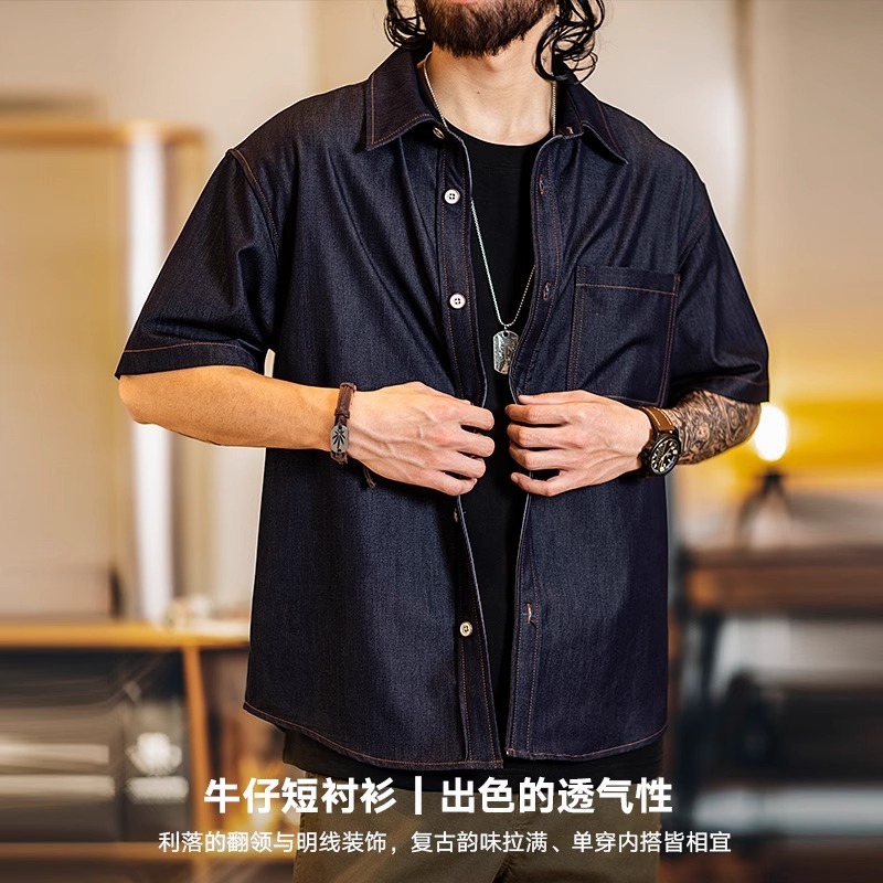 Wuluwear American Denim Shirt Men's Short-Sleeved 2025 Summer New Style Stretchy Slightly Loose Thin Half-Sleeved t-Shirt Men