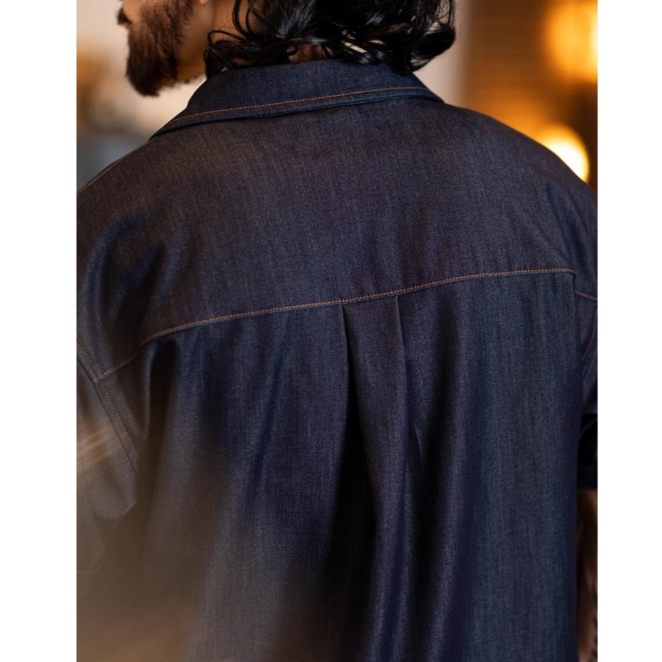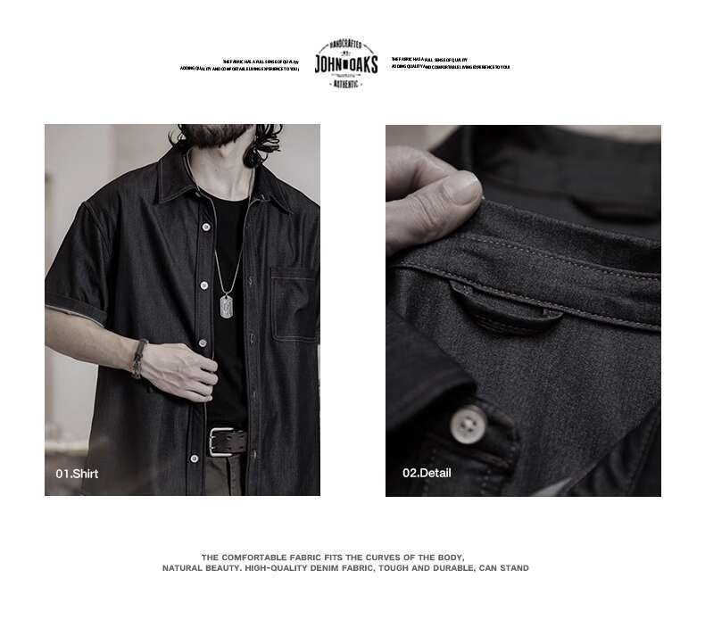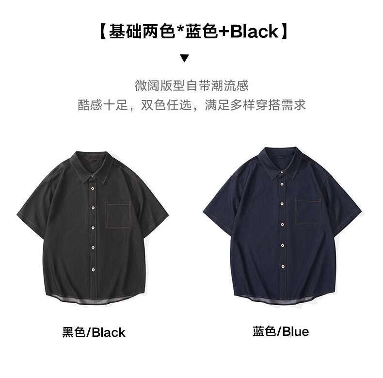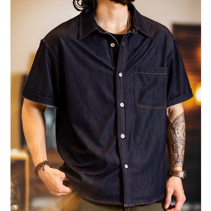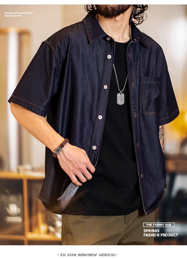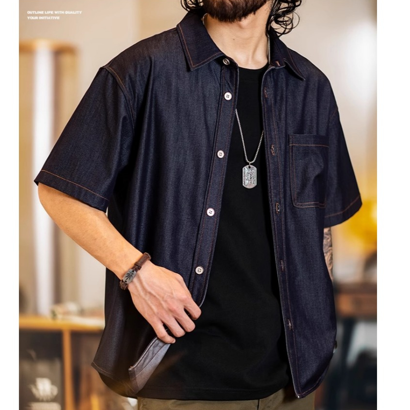 Wuluwear American Denim Shirt Men's Short-Sleeved 2025 Summer New Style Stretchy Slightly Loose Thin Half-Sleeved t-Shirt Men