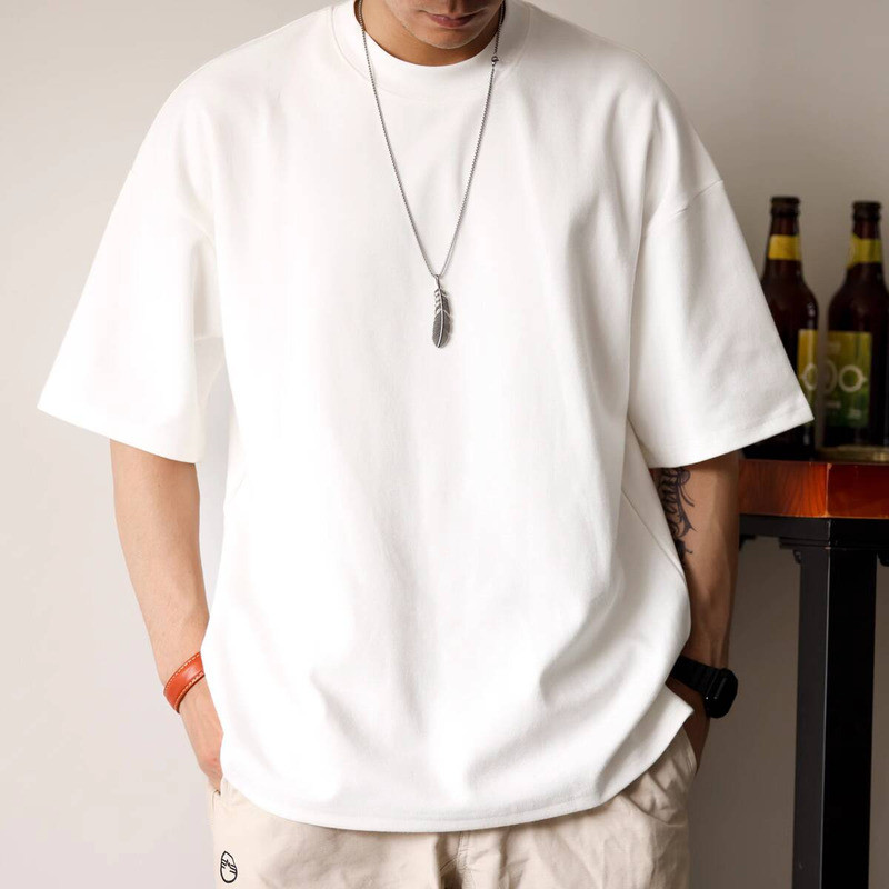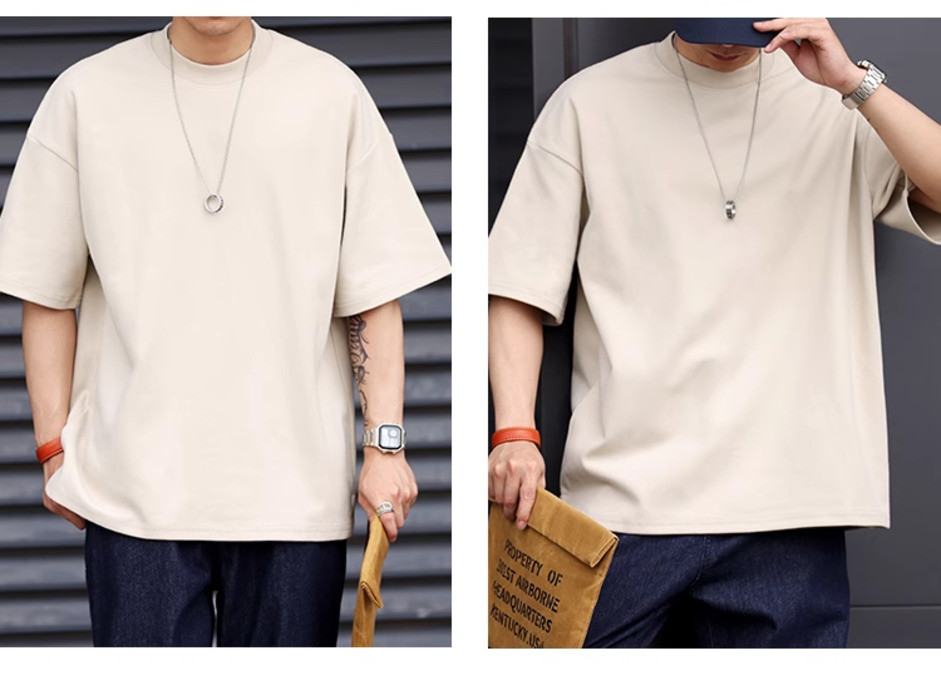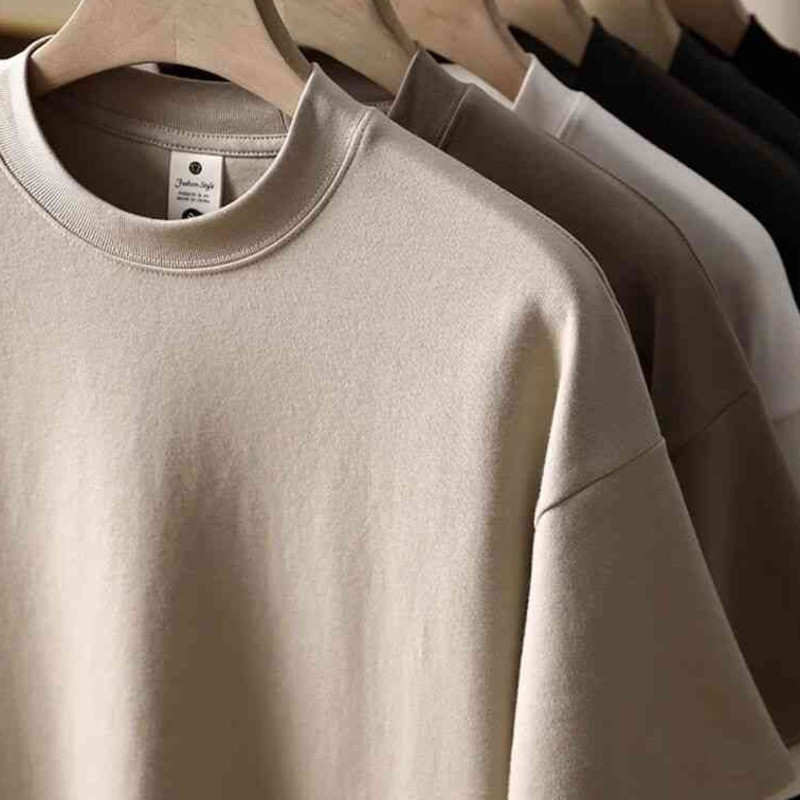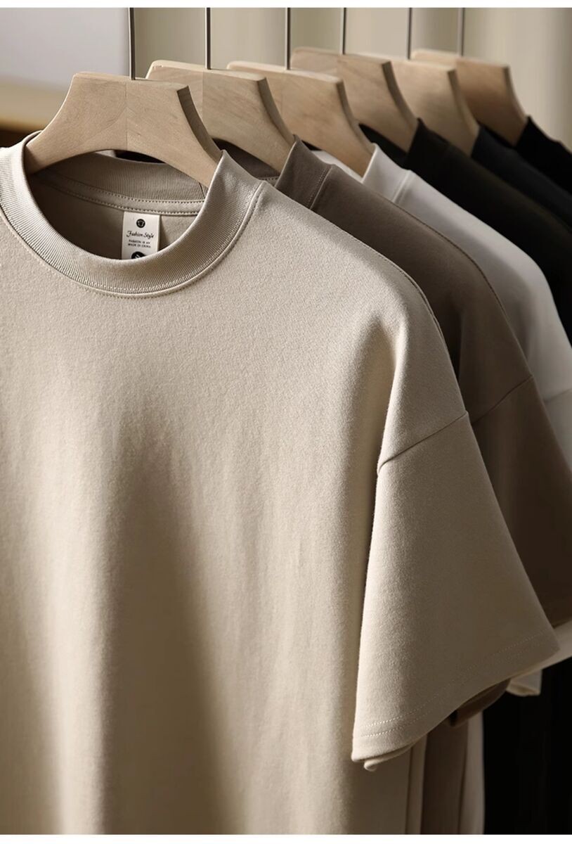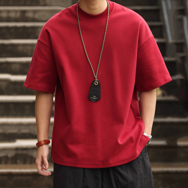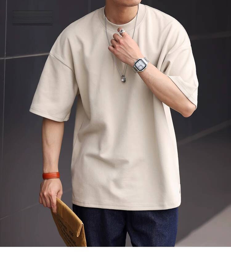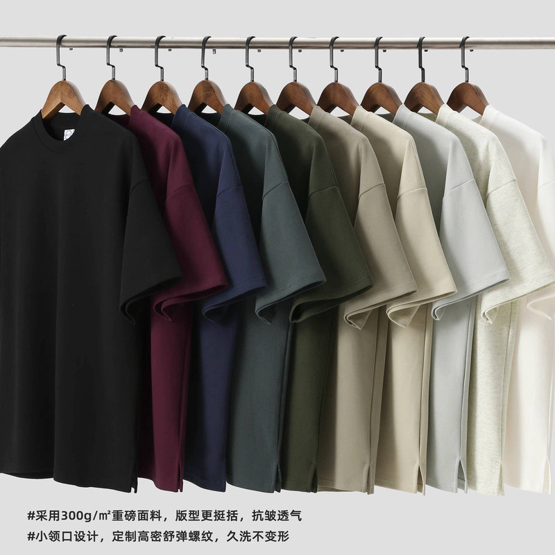 Wuluwear American Style 300g Small Neckline Short-Sleeved T-Shirt Men Loose Summer Casual Solid Color Anti-Wrinkle Large Size T-Shirt