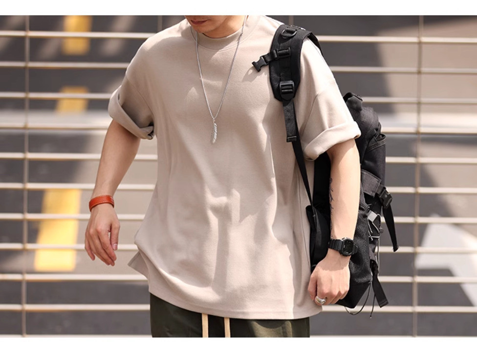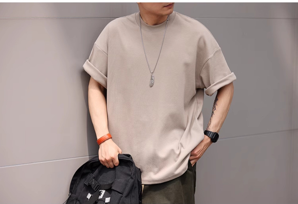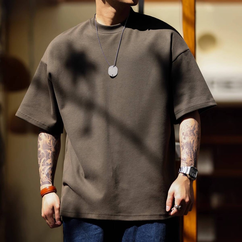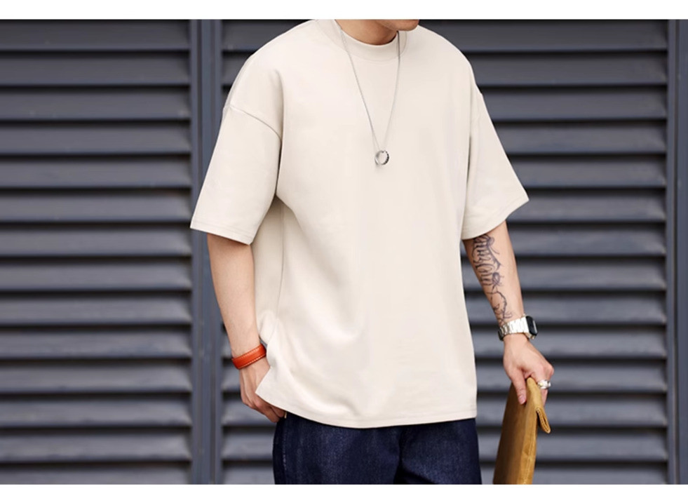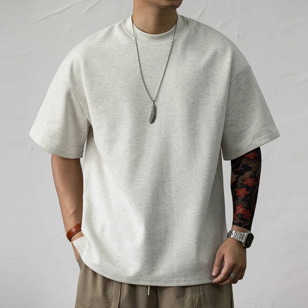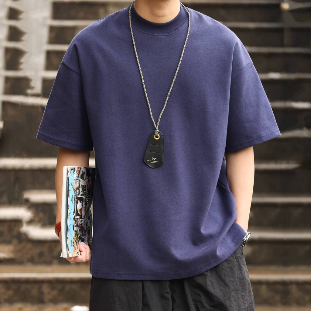 Wuluwear American Style 300g Small Neckline Short-Sleeved T-Shirt Men Loose Summer Casual Solid Color Anti-Wrinkle Large Size T-Shirt