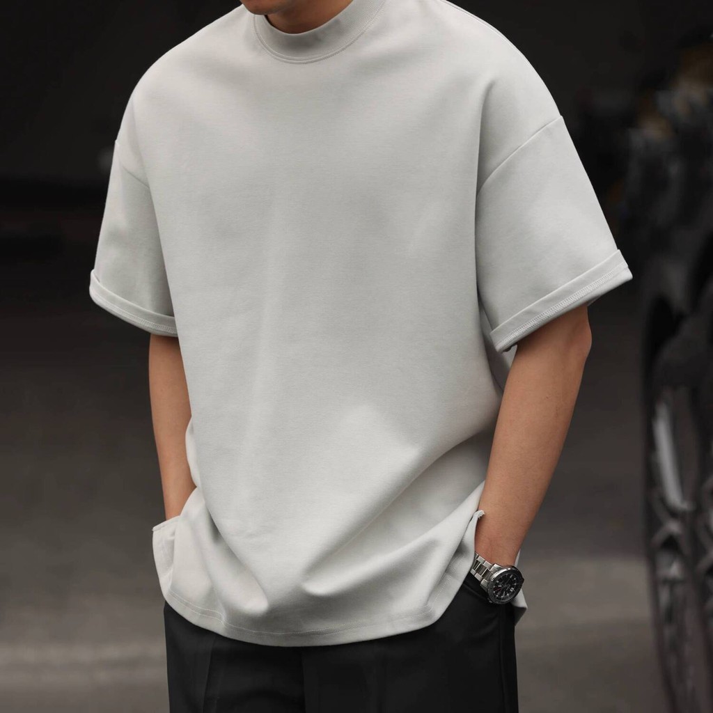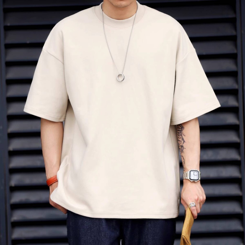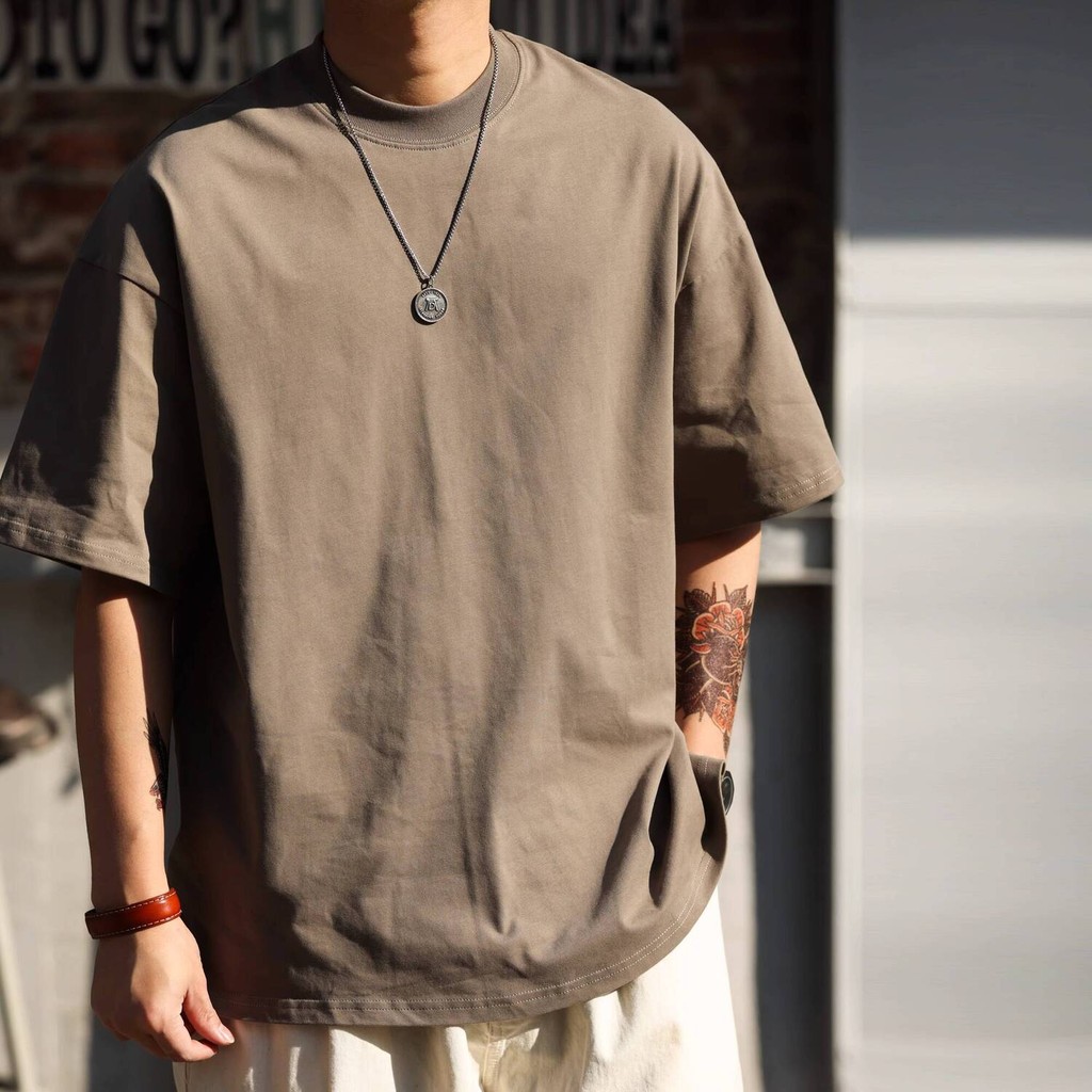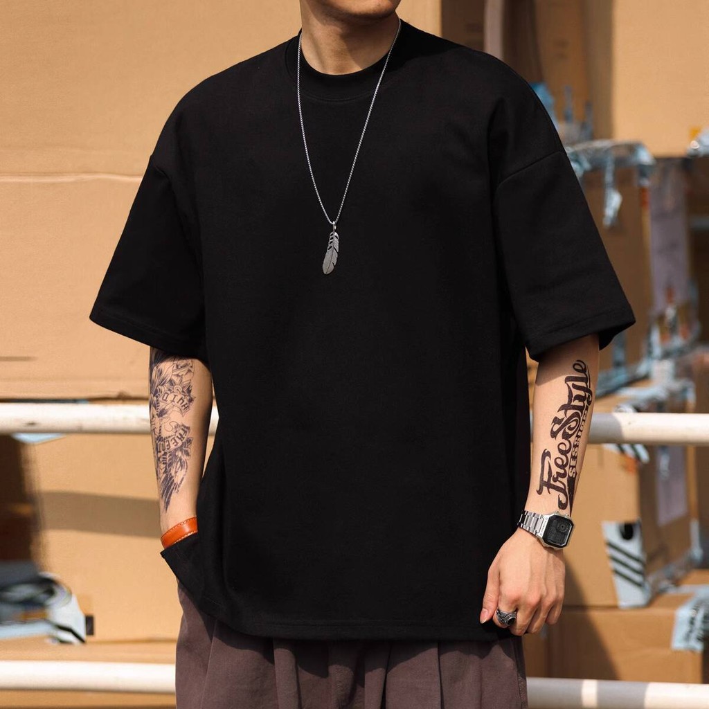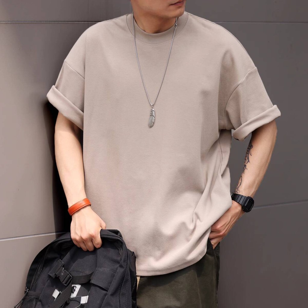 Wuluwear American Style 300g Small Neckline Short-Sleeved T-Shirt Men Loose Summer Casual Solid Color Anti-Wrinkle Large Size T-Shirt