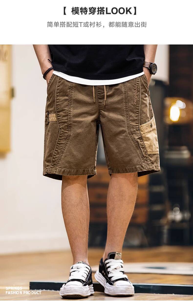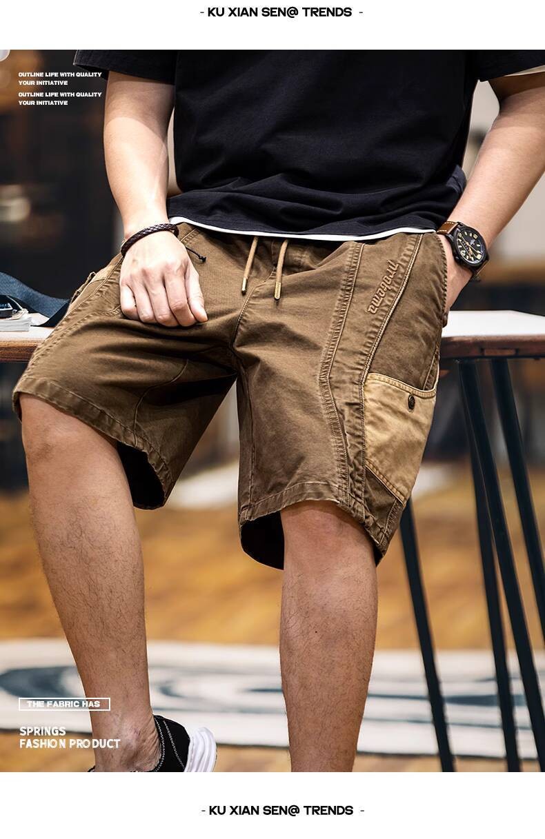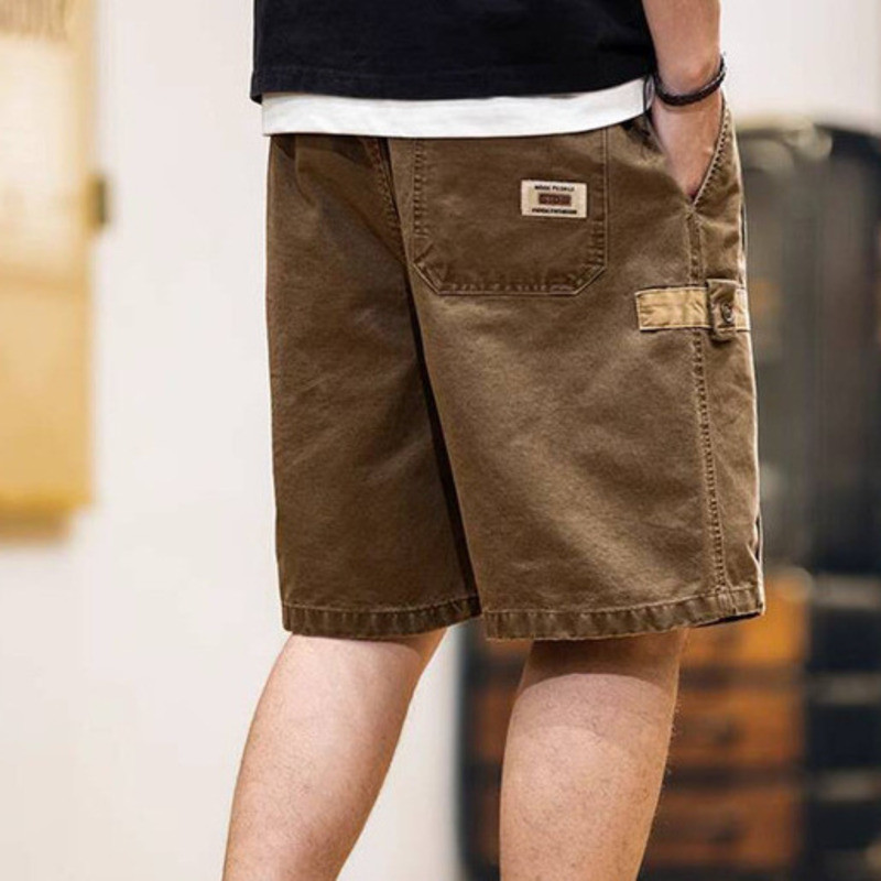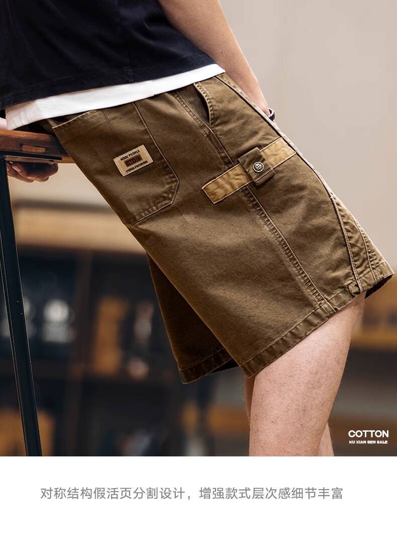 Wuluwear American Style Distressed Logging Woodworking Shorts Men 2025 Summer New Style Middle Pants Pure Cotton Overalls Five-point Pants Men Style