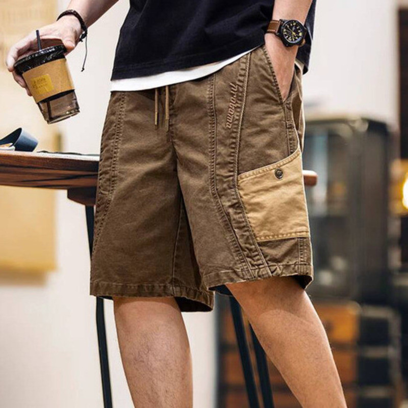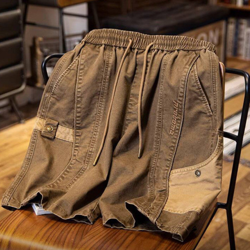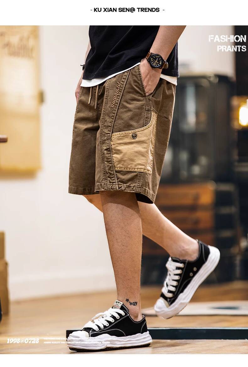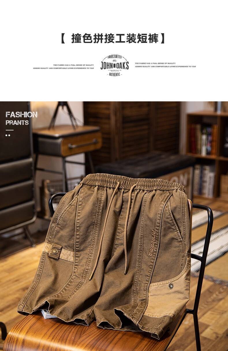 Wuluwear American Style Distressed Logging Woodworking Shorts Men 2025 Summer New Style Middle Pants Pure Cotton Overalls Five-point Pants Men Style