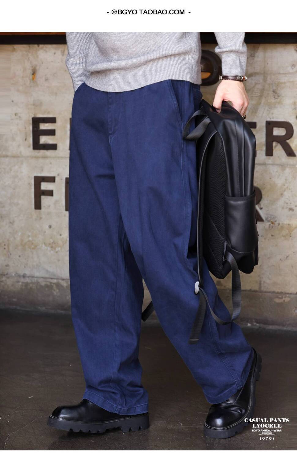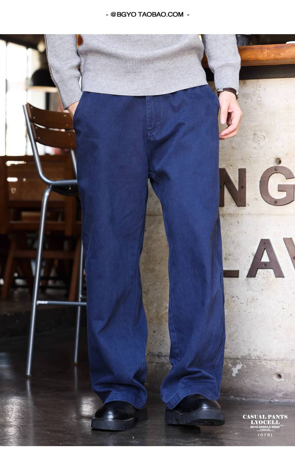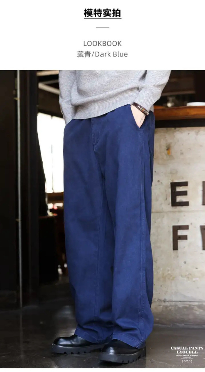 Magic Blue Retro Overalls Casual Pants Men Heavy Industry Washed Vintage Straight Fleece Long Pants